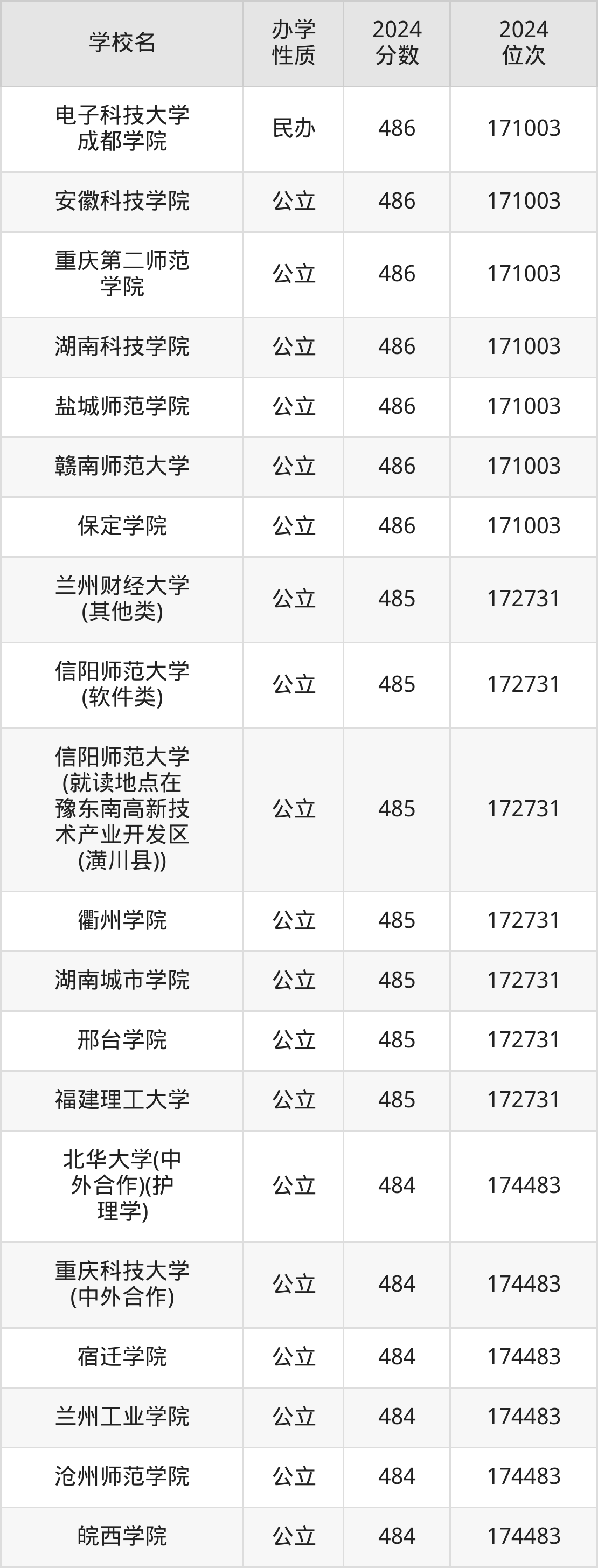 | 电子科技大学 成都学院 | 486 | 171003 |