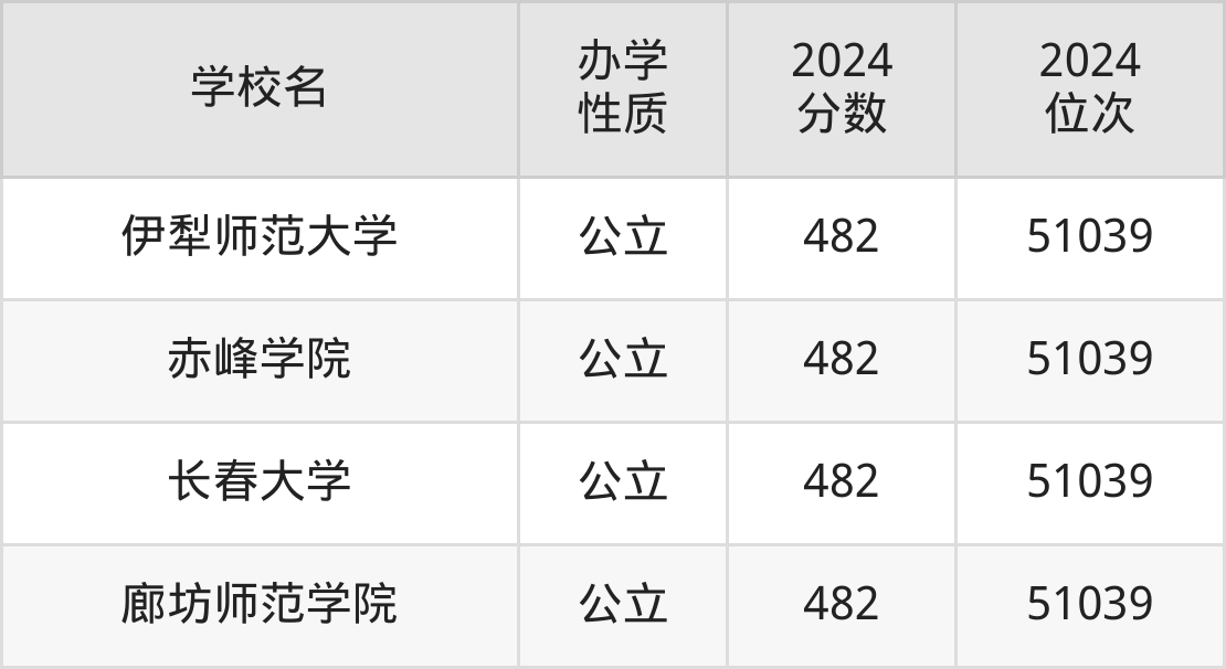 | 吉林师范大学 (较高收费) | 491 | 162618 |