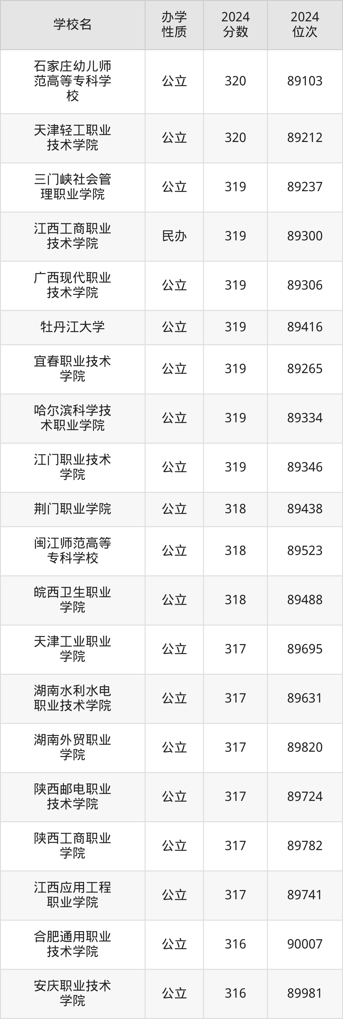 | 云南轻纺职业 学院 | 320 | 191905 |