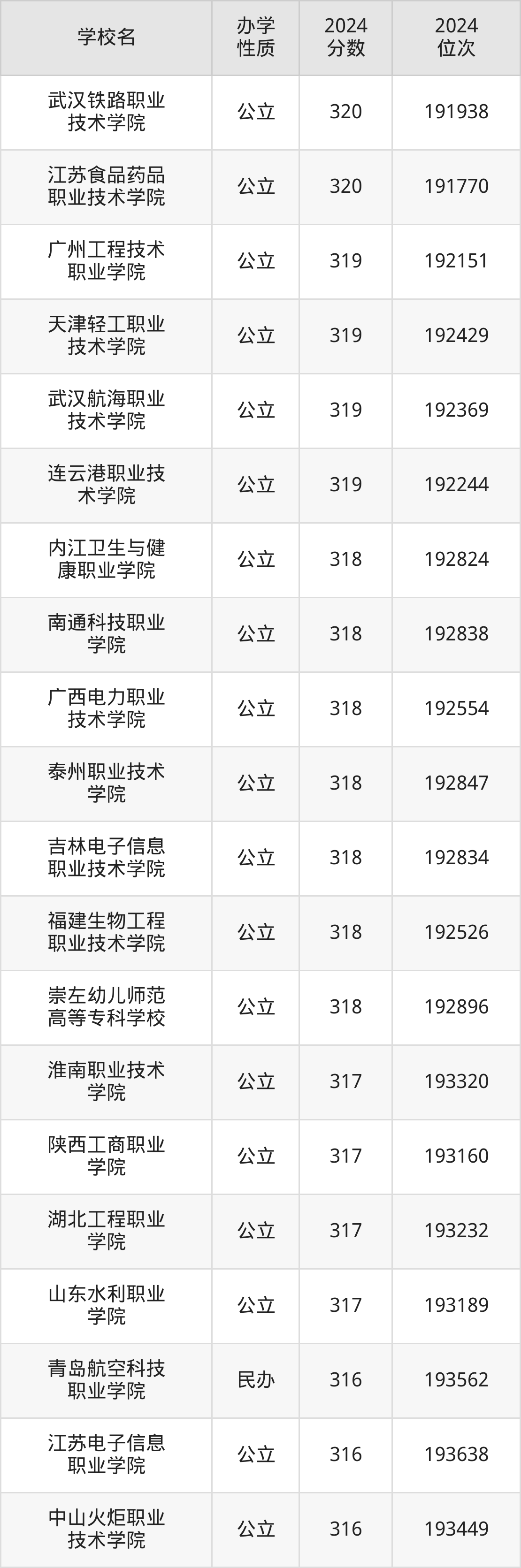 | 江苏电子信息 职业学院 | 316 | 193638 |