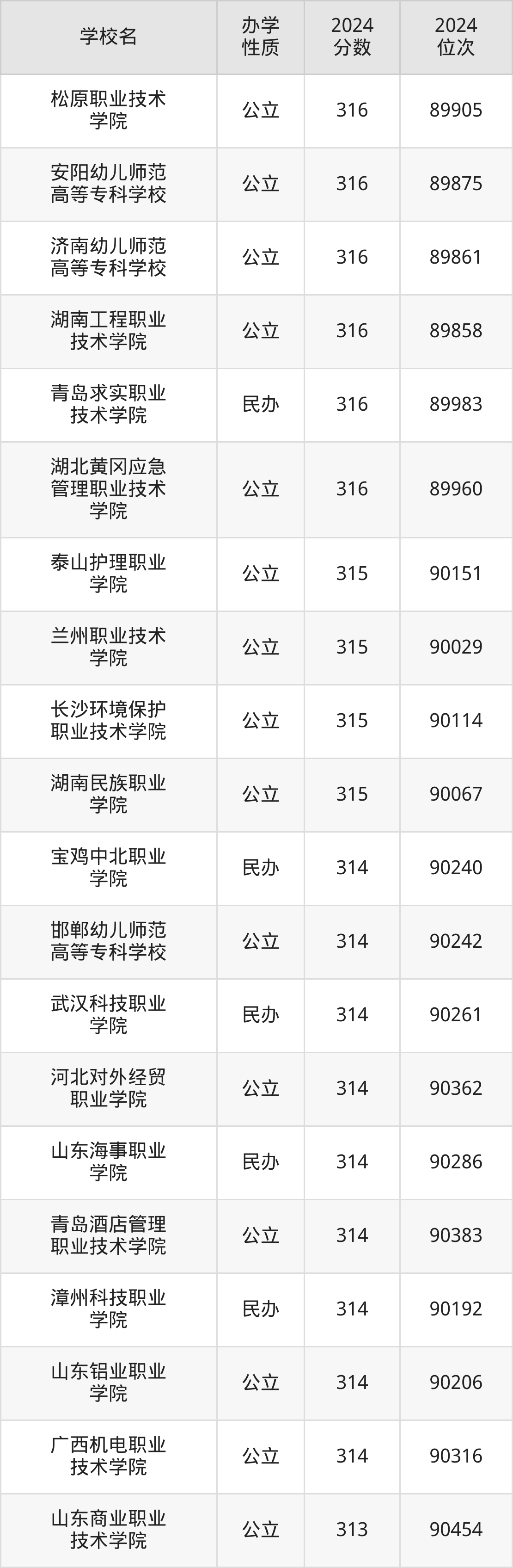 | 青岛酒店管理 职业技术学院 | 314 | 90383 |