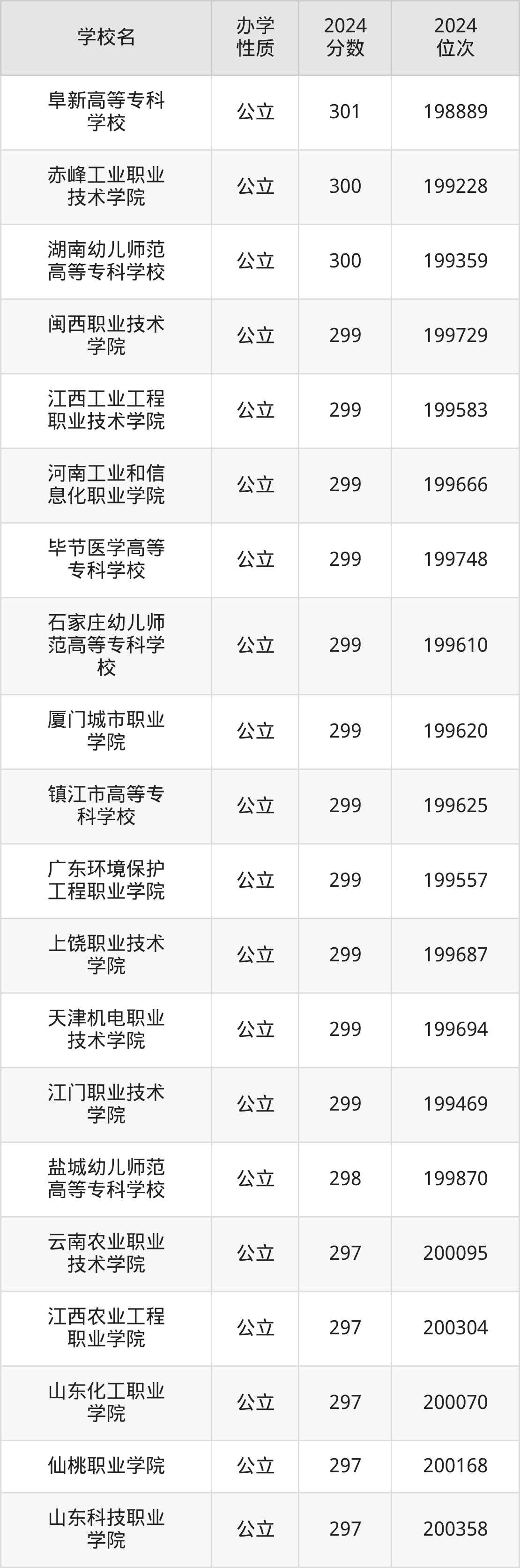 | 江西农业工程 职业学院 | 297 | 200304 |