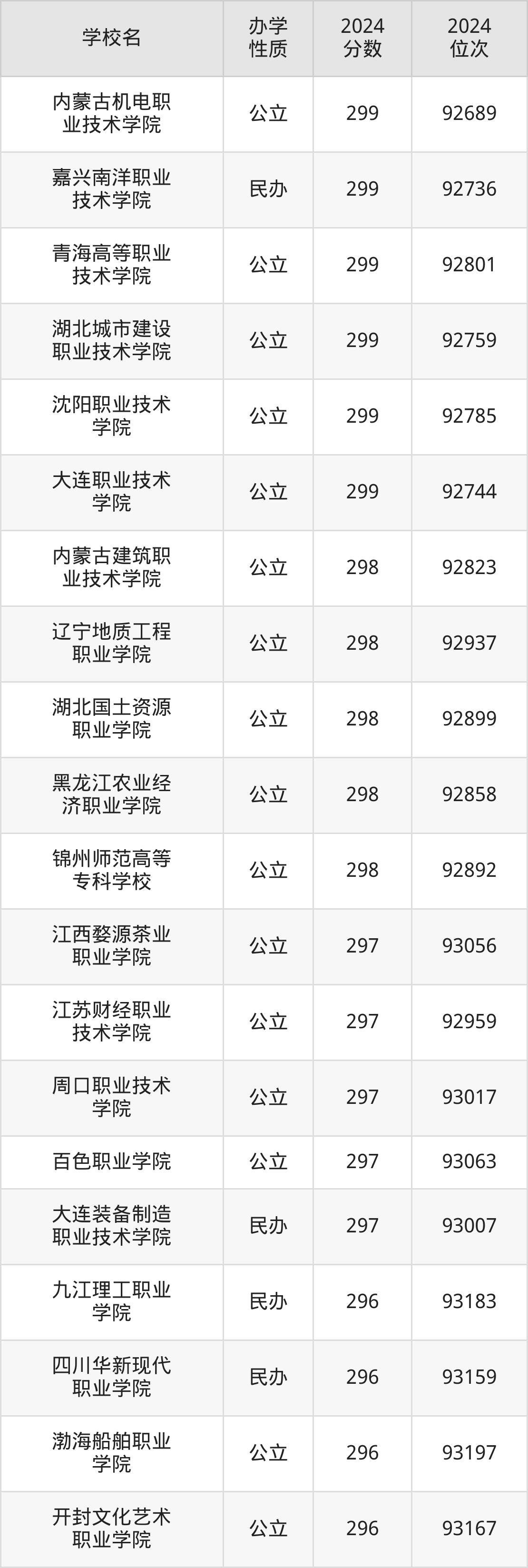 | 沈阳职业技术 学院 | 299 | 92785 |