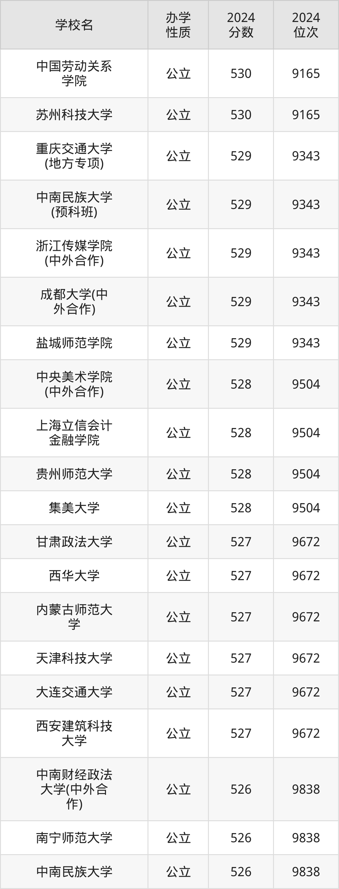 | 中国劳动关系 学院 | 530 | 9165 |