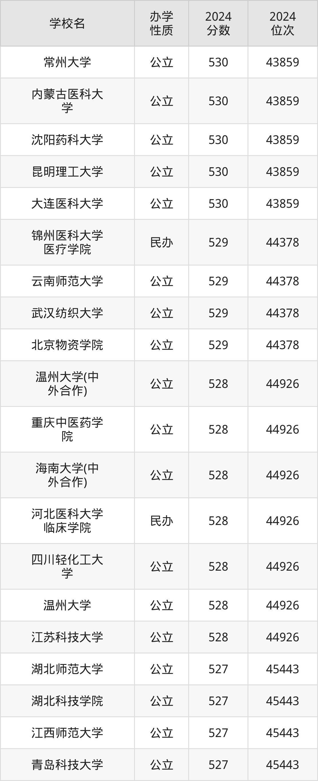 | 沈阳药科大学 | 530 | 43859 |