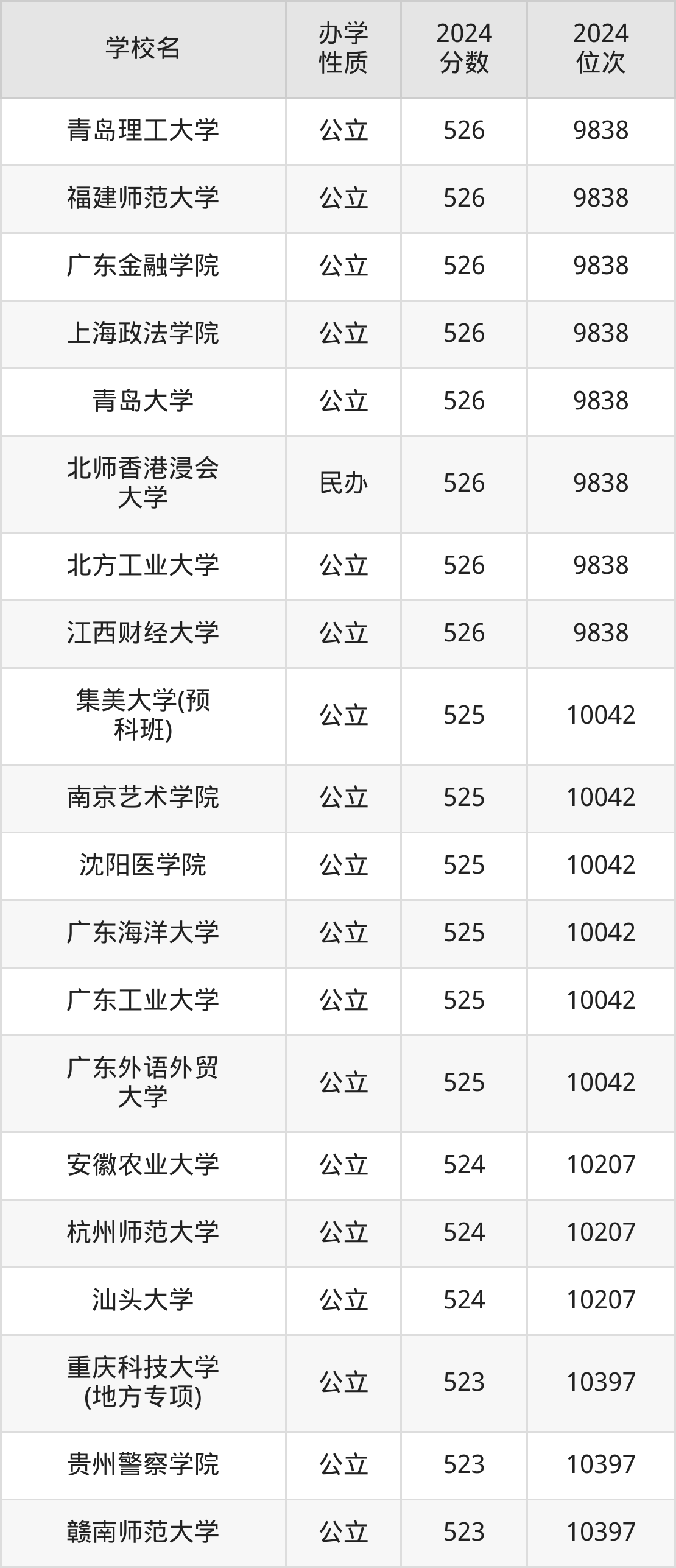 | 学校名 | 2024 分数 | 2024 位次 |