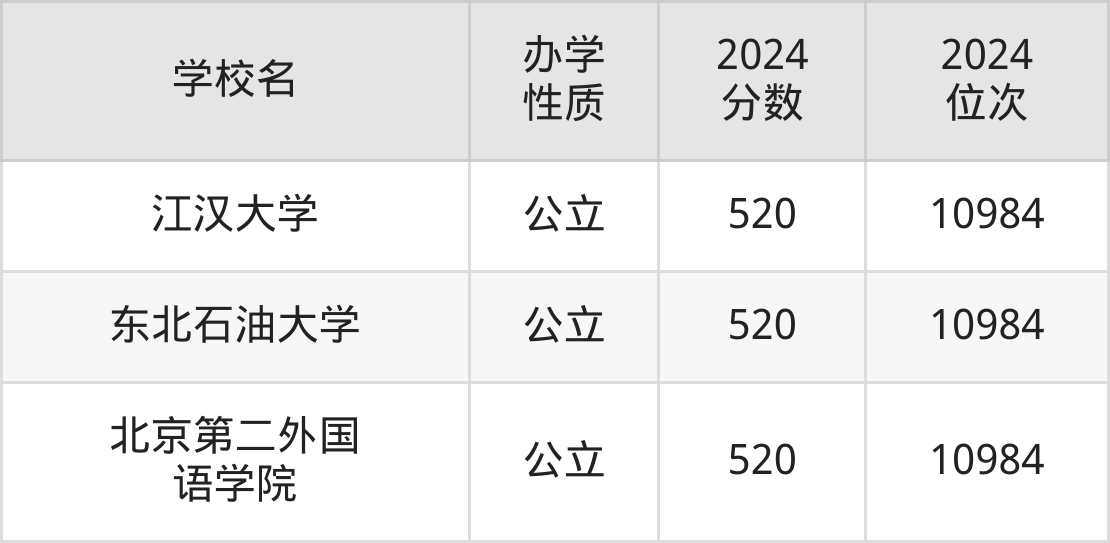 | 北京第二外国 语学院 | 520 | 10984 |