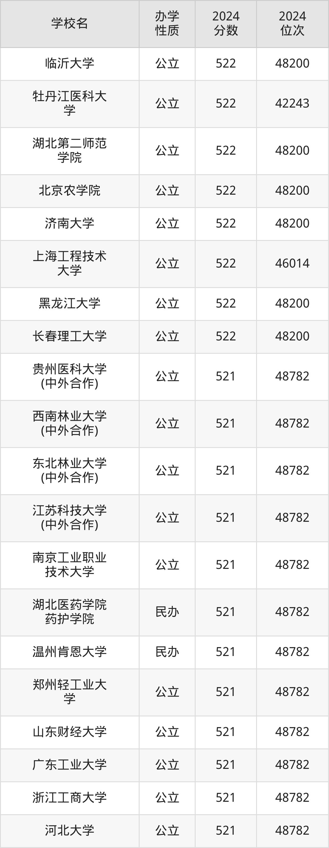 | 临沂大学 | 522 | 48200 |