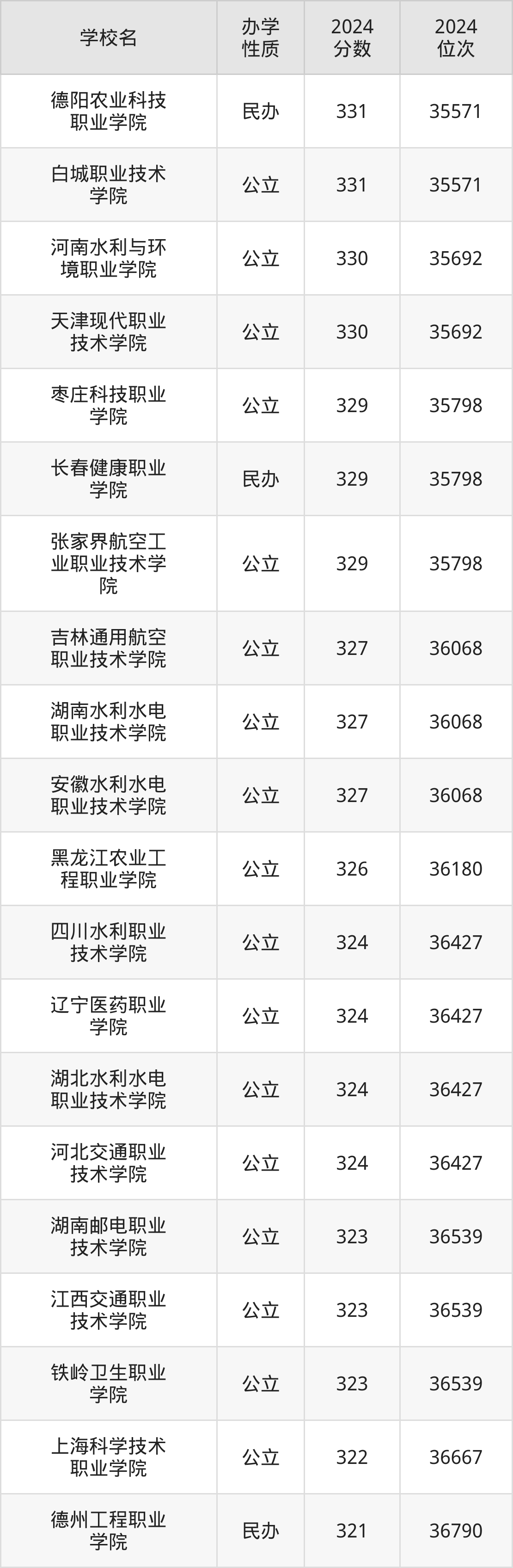 | 河南水利与环 境职业学院 | 330 | 35692 |