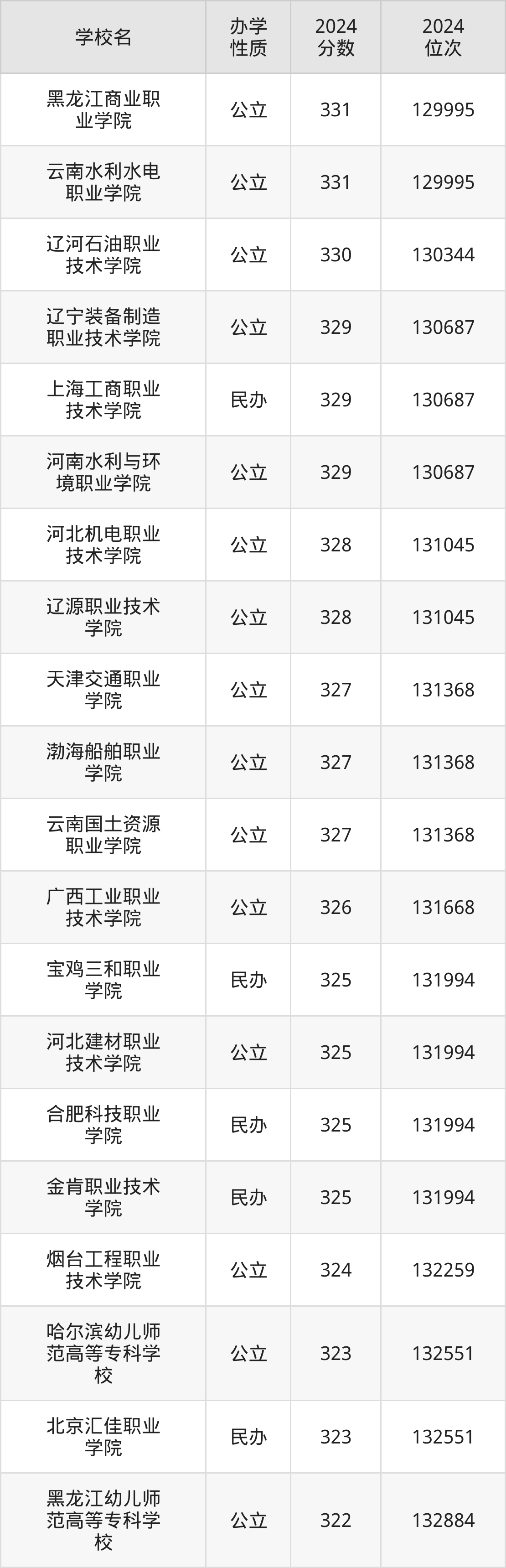 | 云南水利水电 职业学院 | 331 | 129995 |