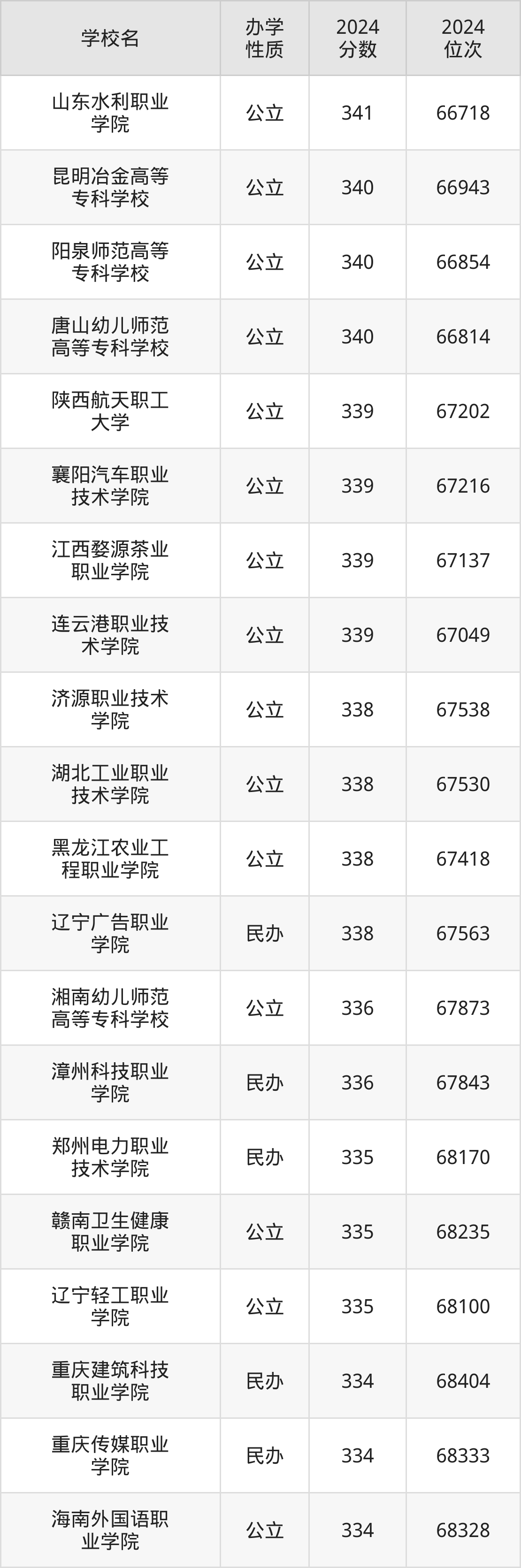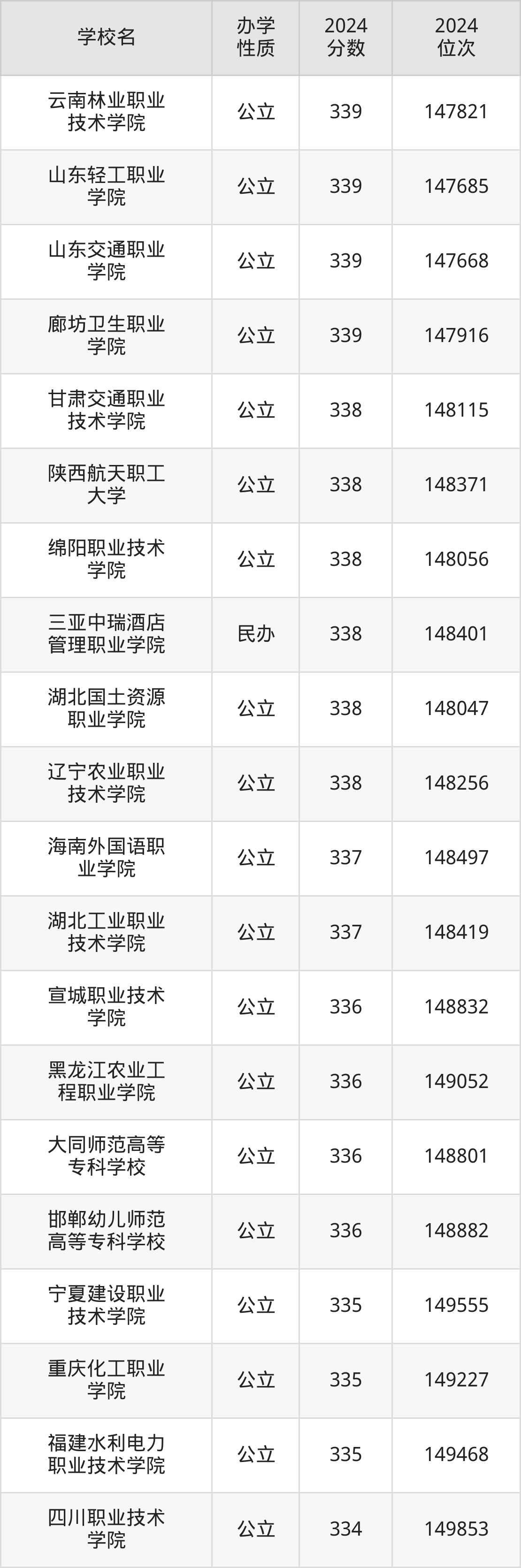 | 福建水利电力 职业技术学院 | 335 | 149468 |