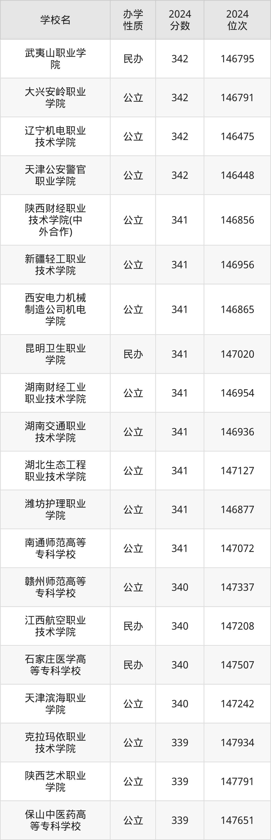 | 陕西艺术职业 学院 | 339 | 147791 |