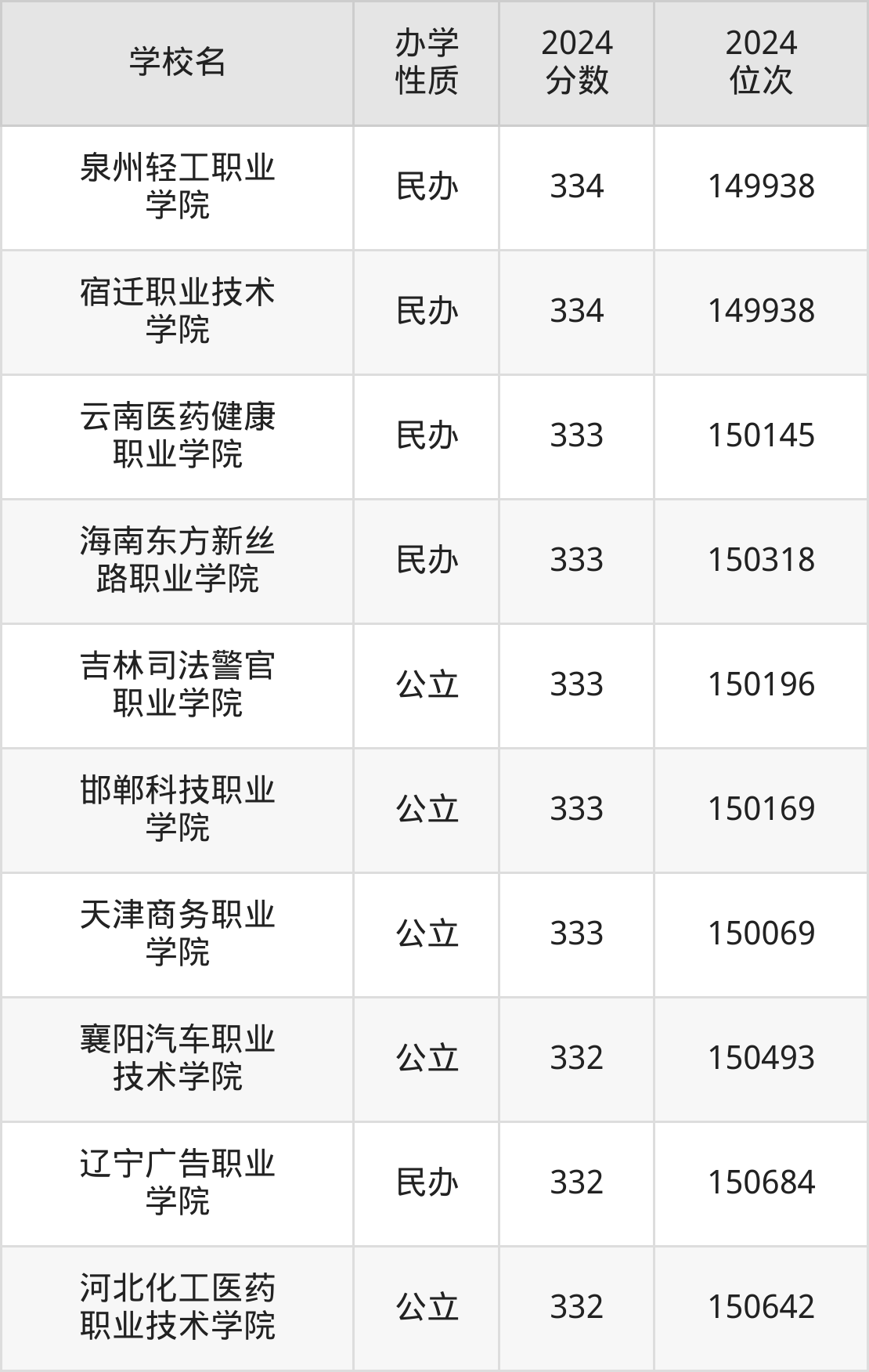 | 泉州轻工职业 学院 | 334 | 149938 |