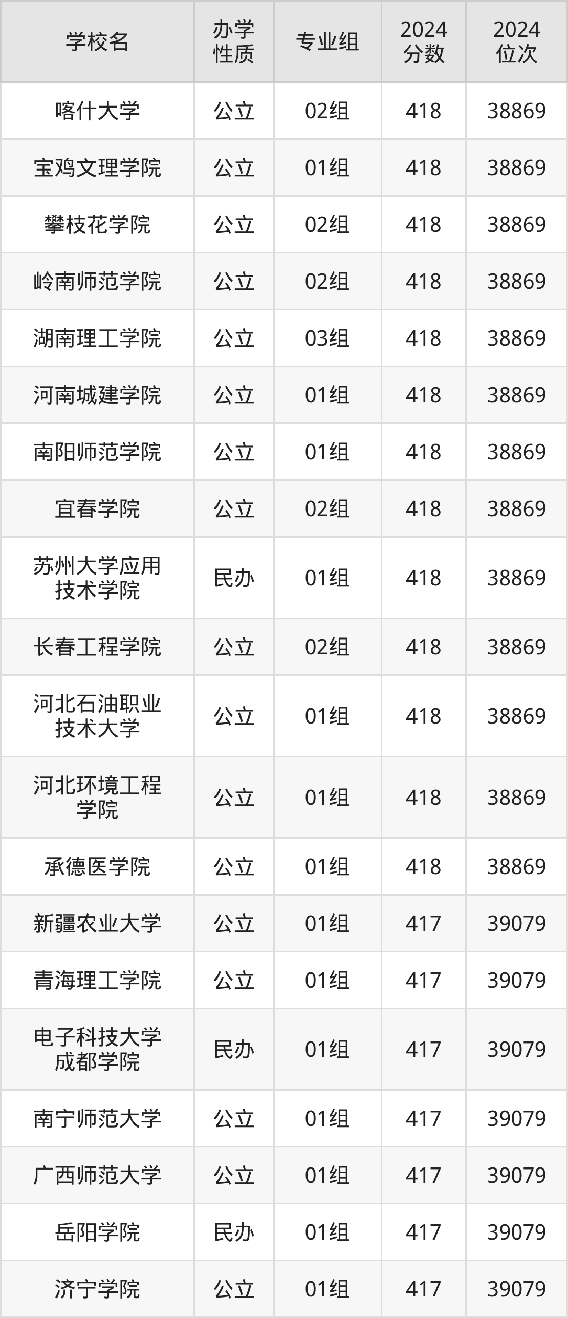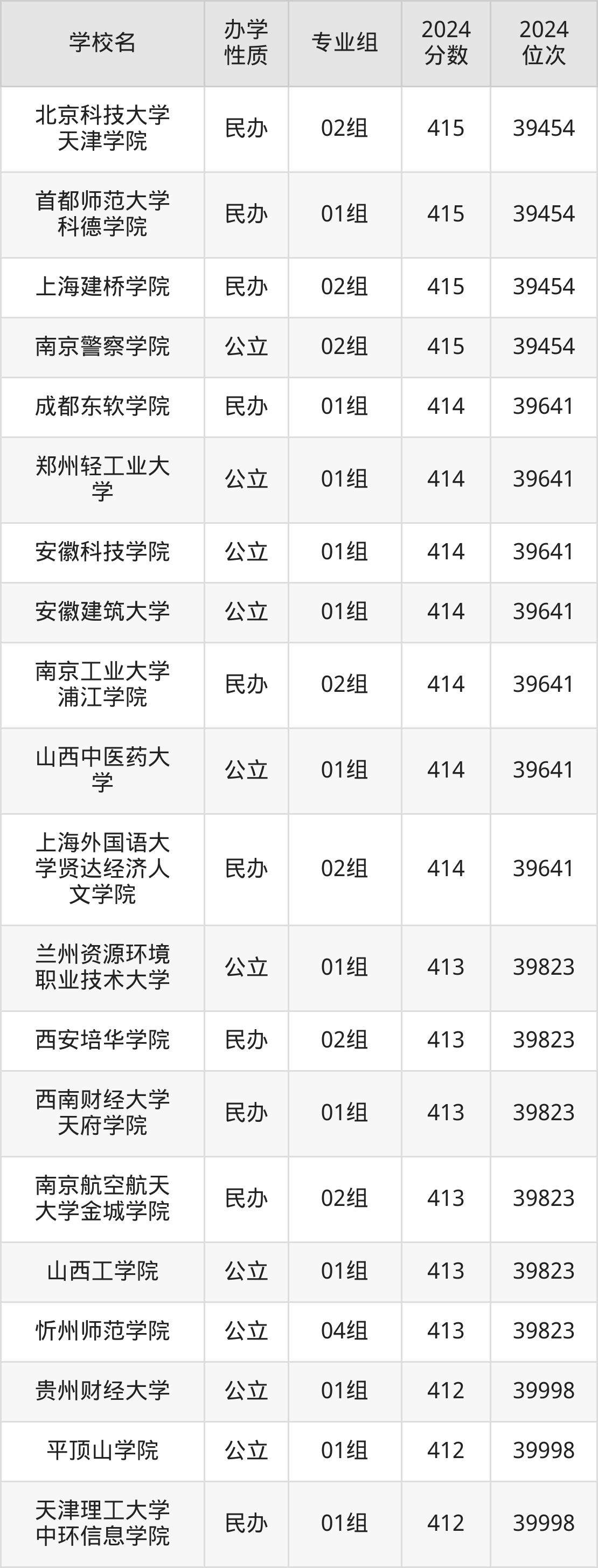 | 学校名 | 专业组 | 2024 分数 | 2024 位次 |