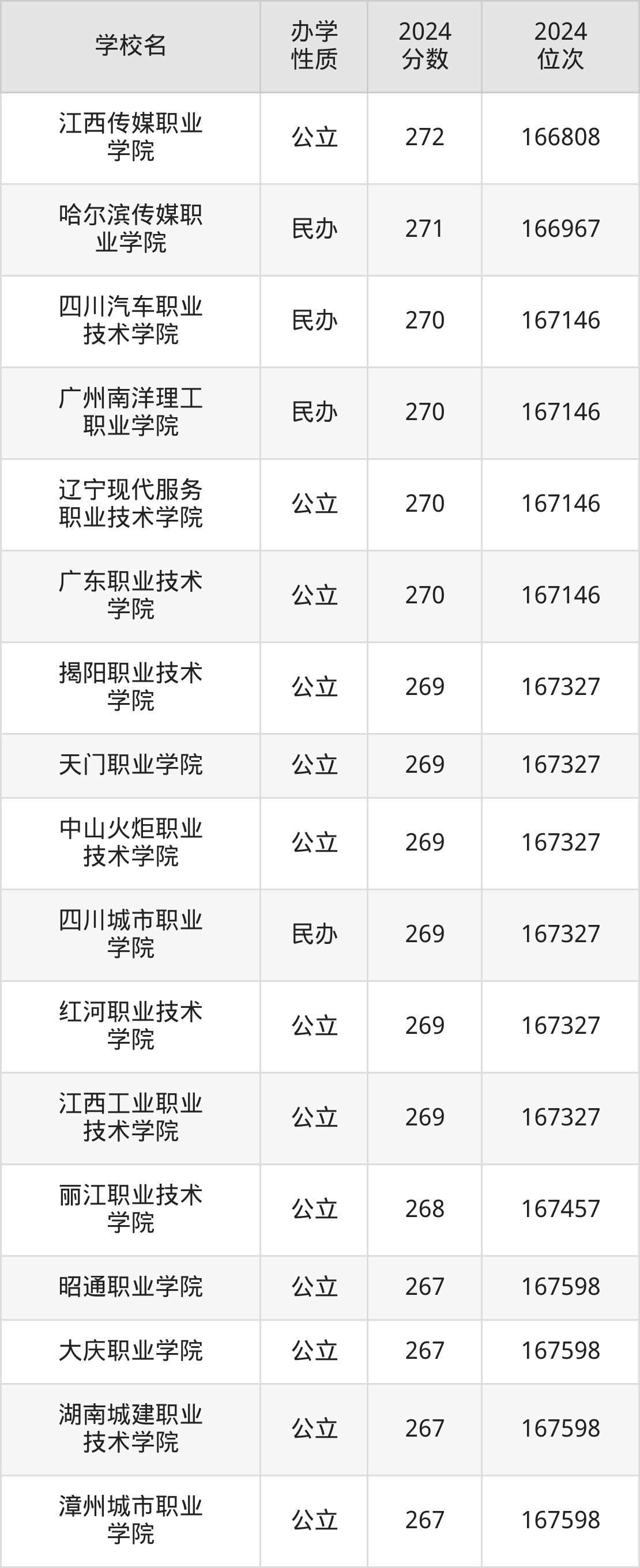 | 江西工业职业 技术学院 | 269 | 167327 |