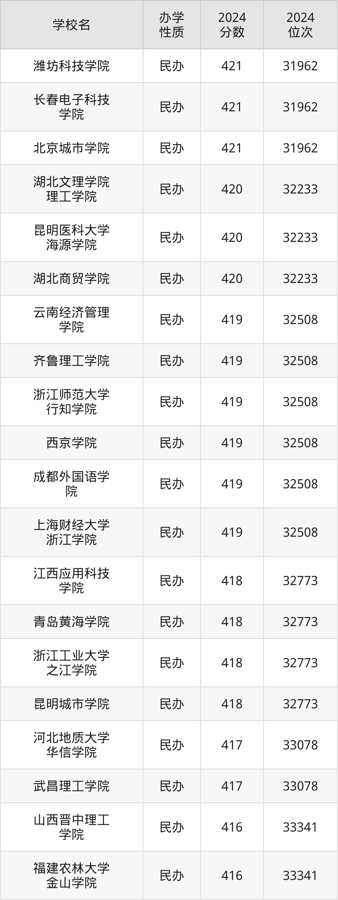 | 昆明城市学院 | 418 | 32773 |