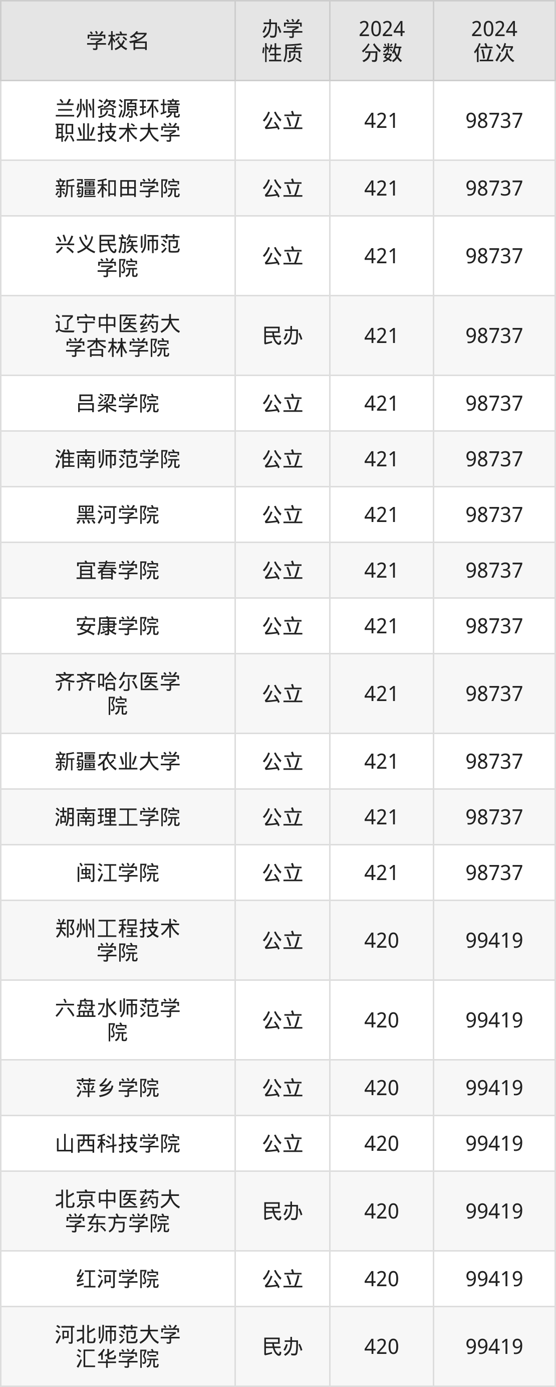 | 北京中医药大 学东方学院 | 420 | 99419 |