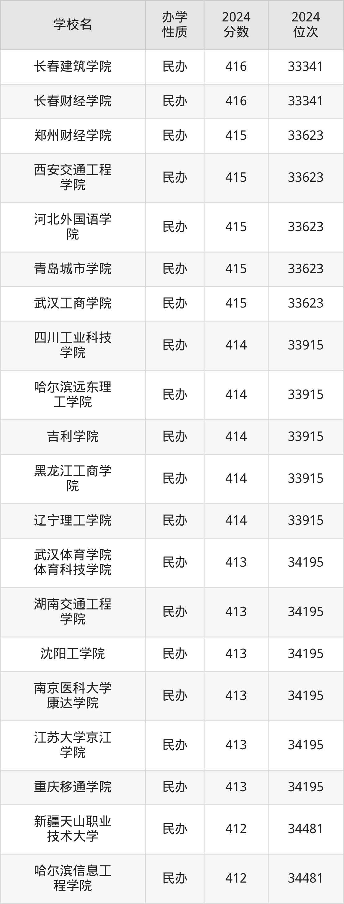 | 长春财经学院 | 416 | 33341 |