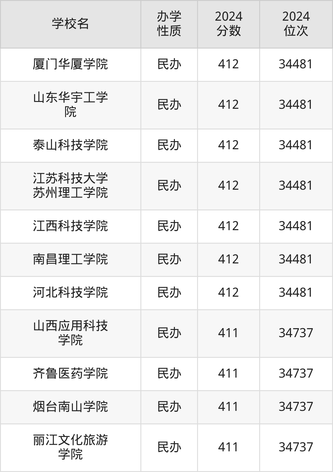 | 山东华宇工学 院 | 412 | 34481 |