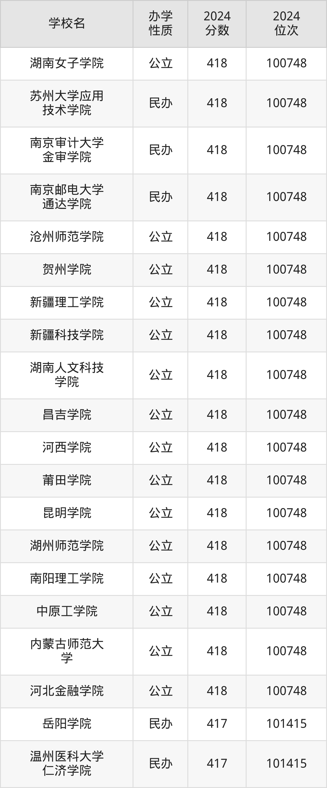| 湖南女子学院 | 418 | 100748 |