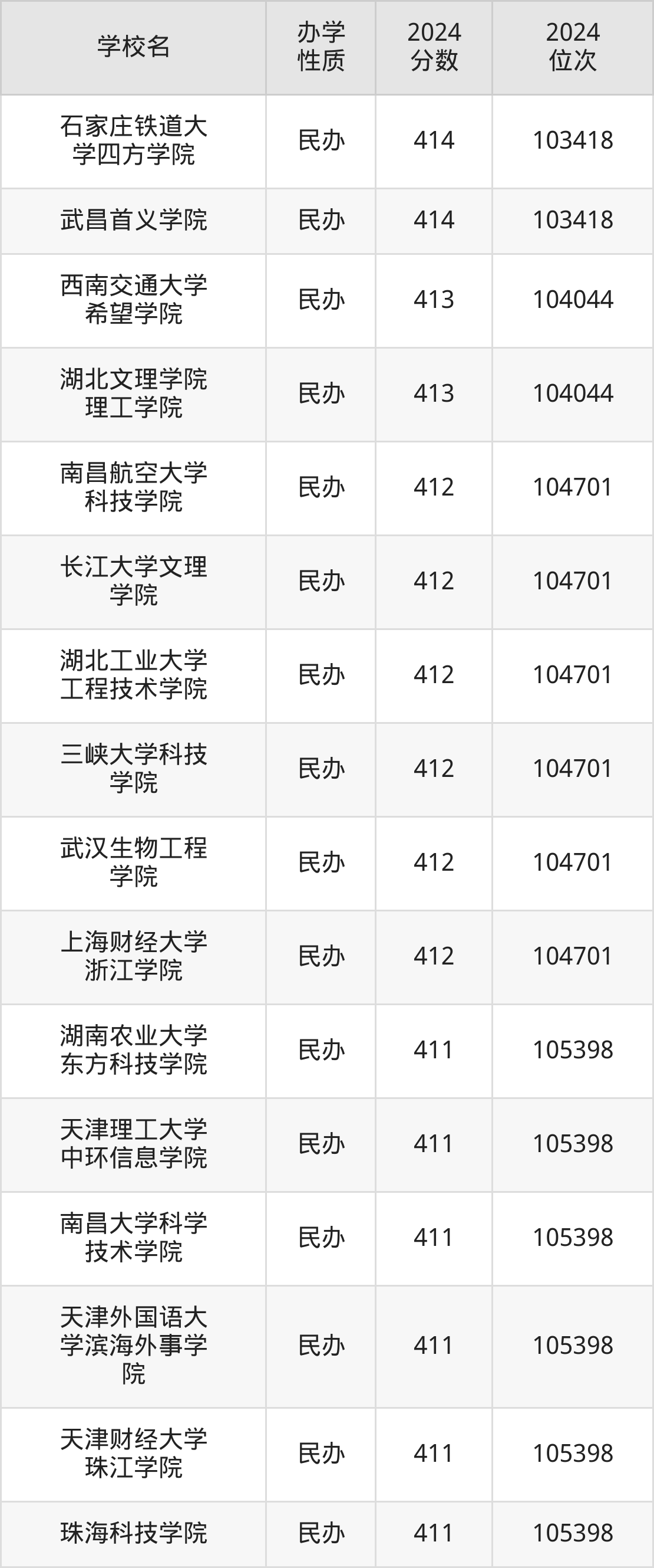 | 武汉生物工程 学院 | 412 | 104701 |