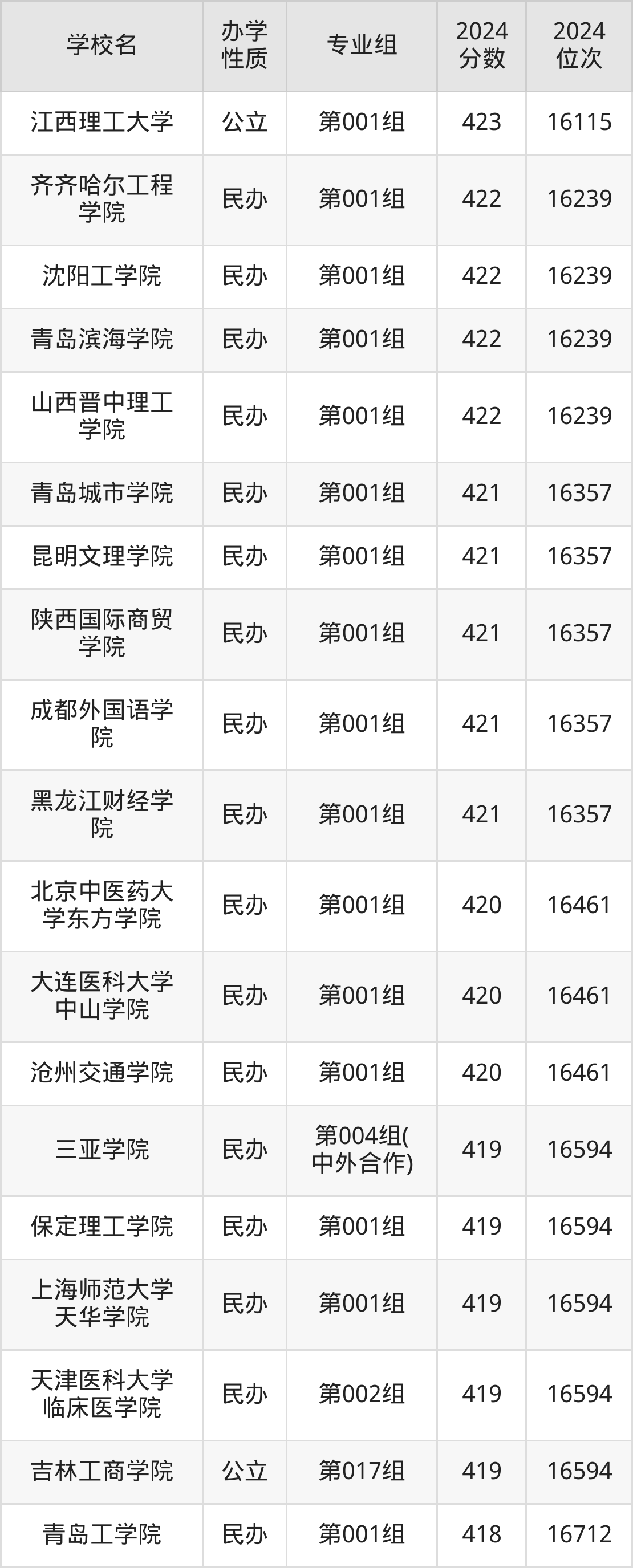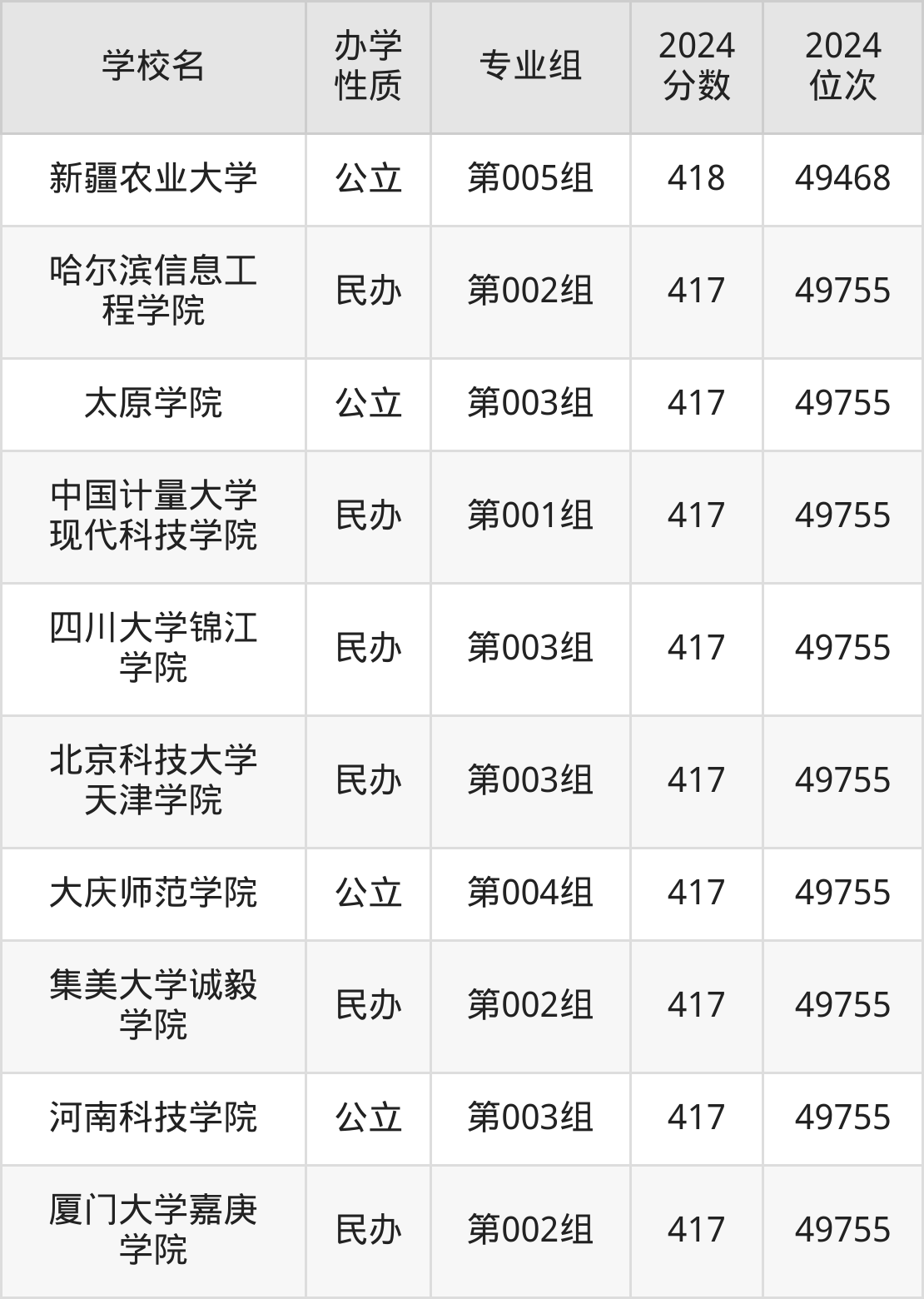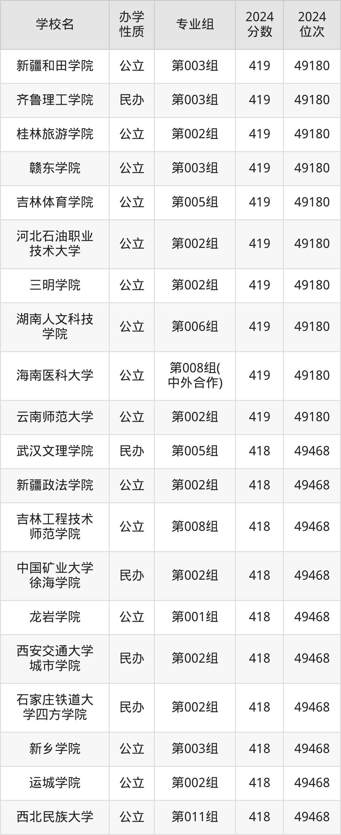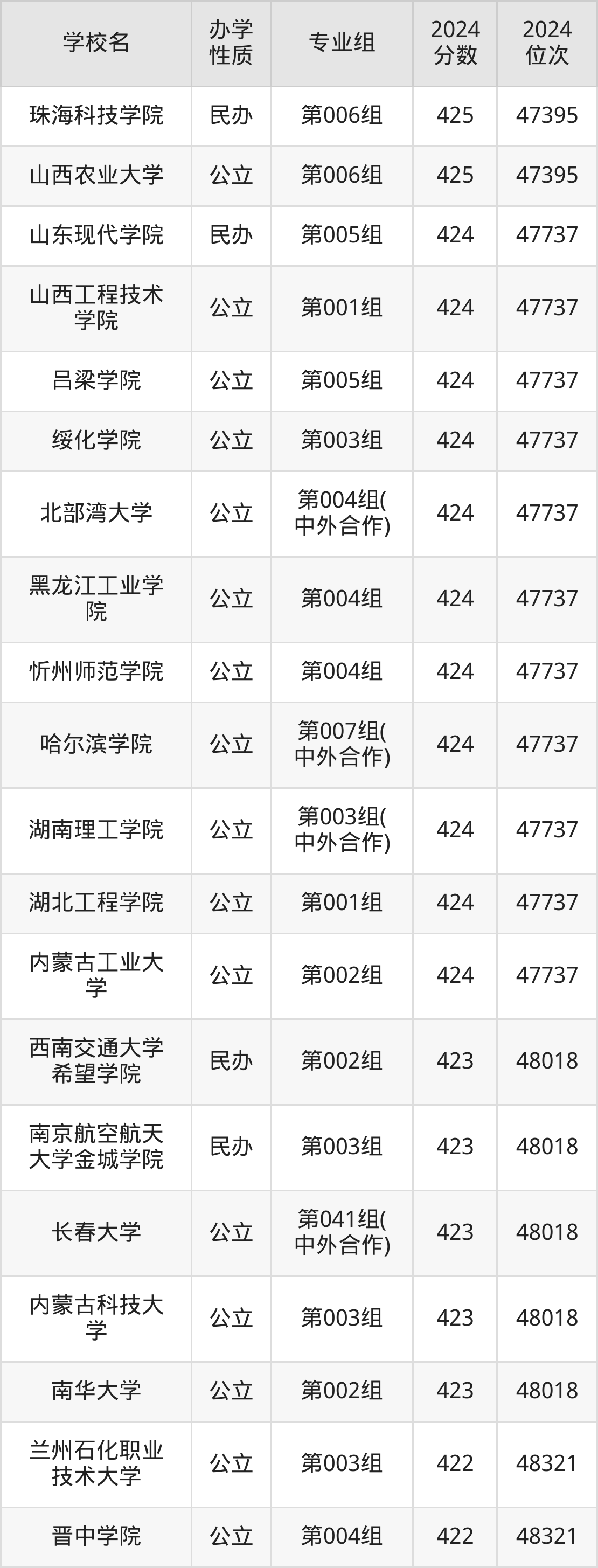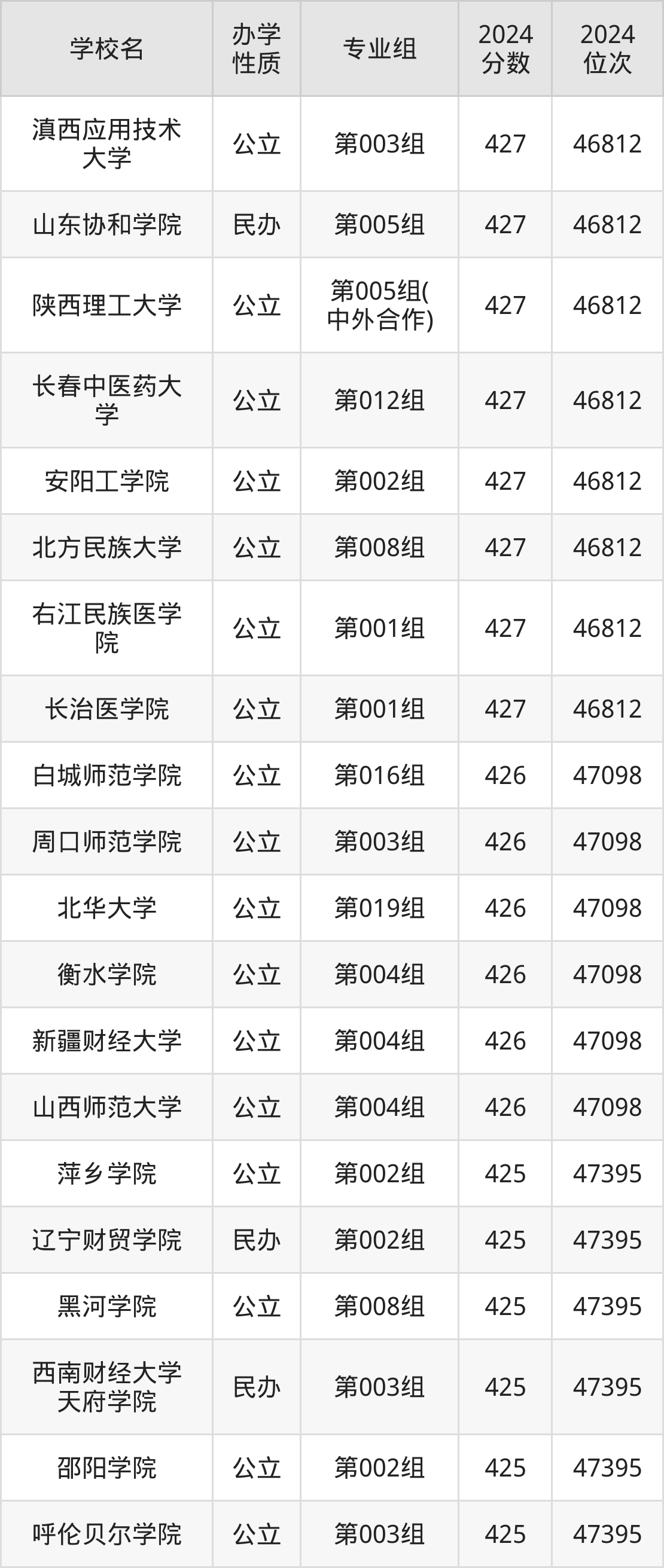 | 学校名 | 专业组 | 2024 分数 | 2024 位次 |