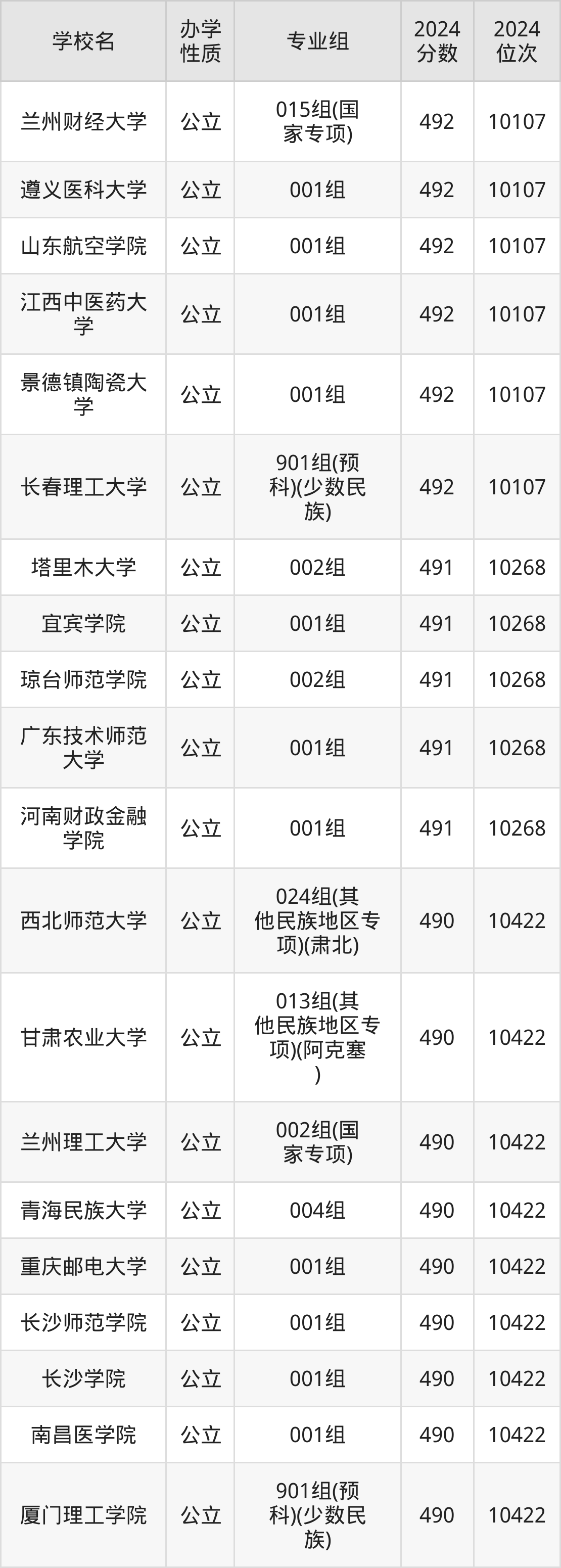 | 长春理工大学 | 901组(预 科)(少数民 族) | 492 | 10107 |