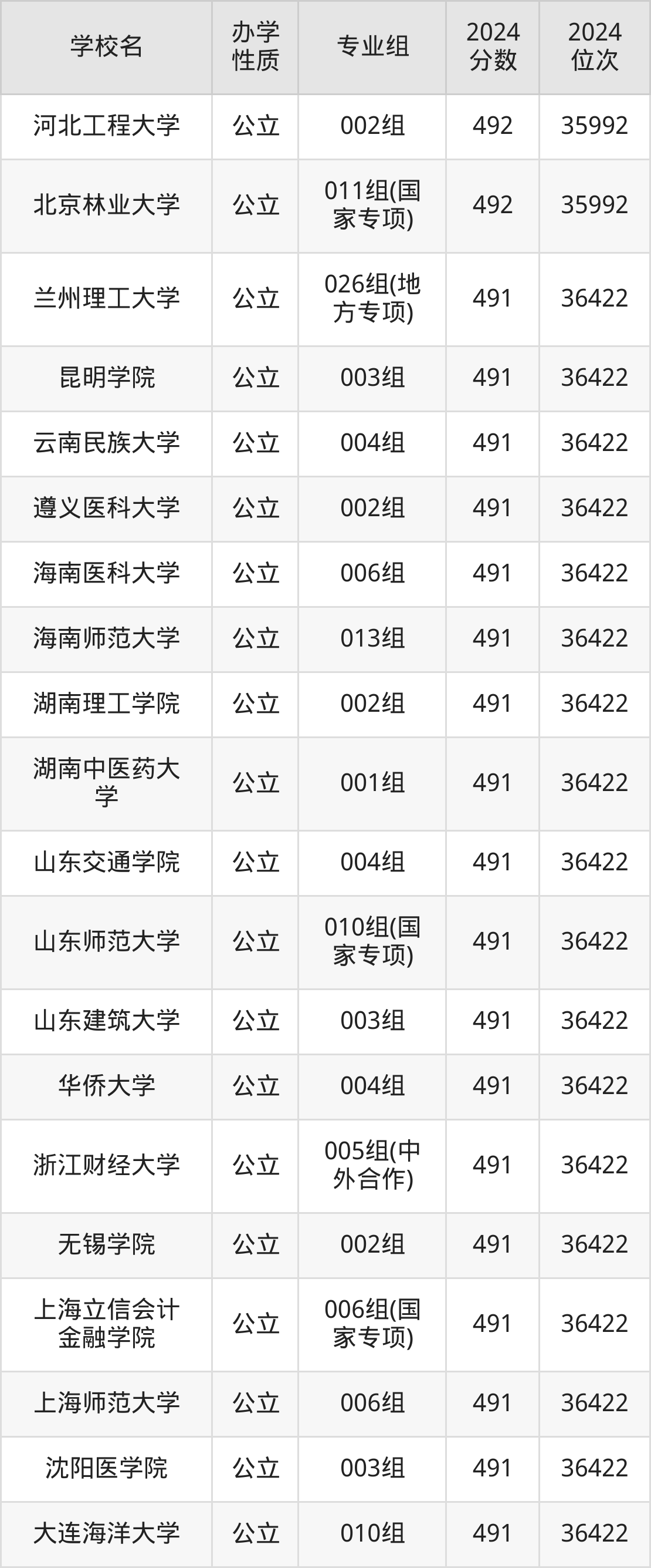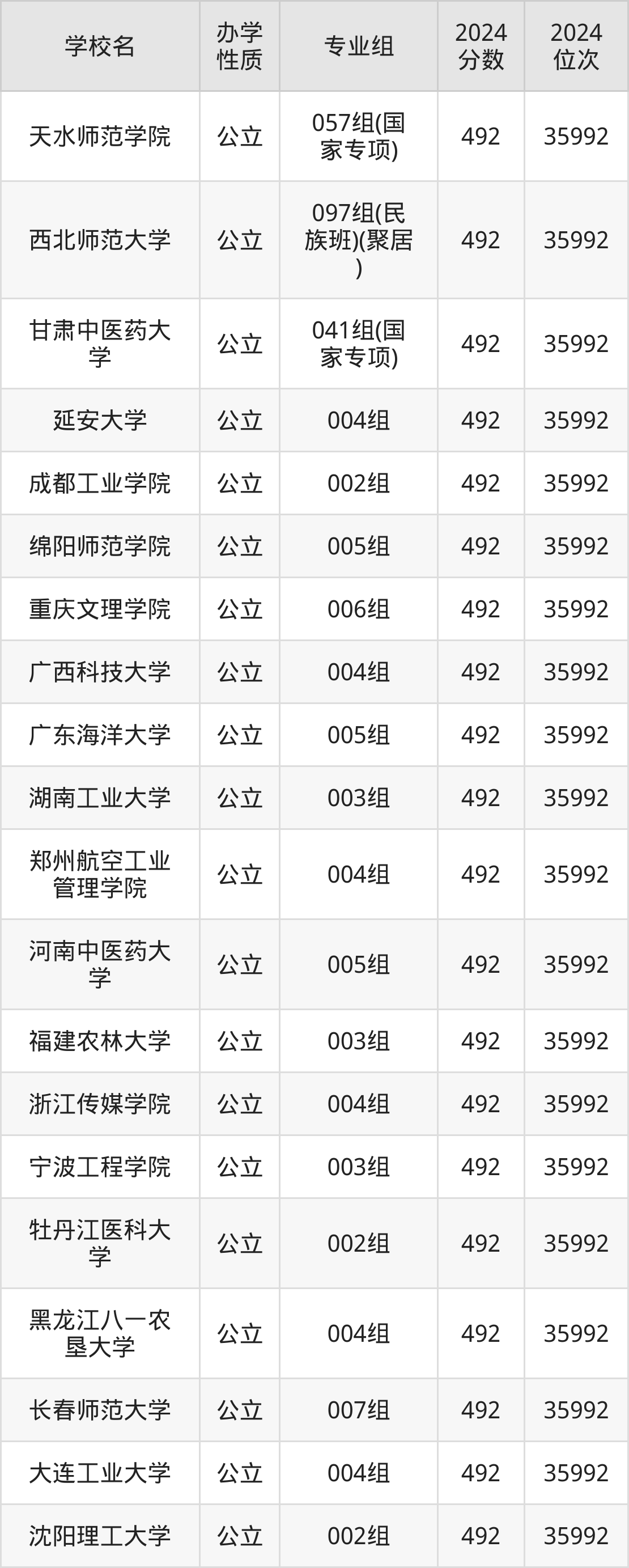 | 甘肃中医药大 学 | 041组(国 家专项) | 492 | 35992 |