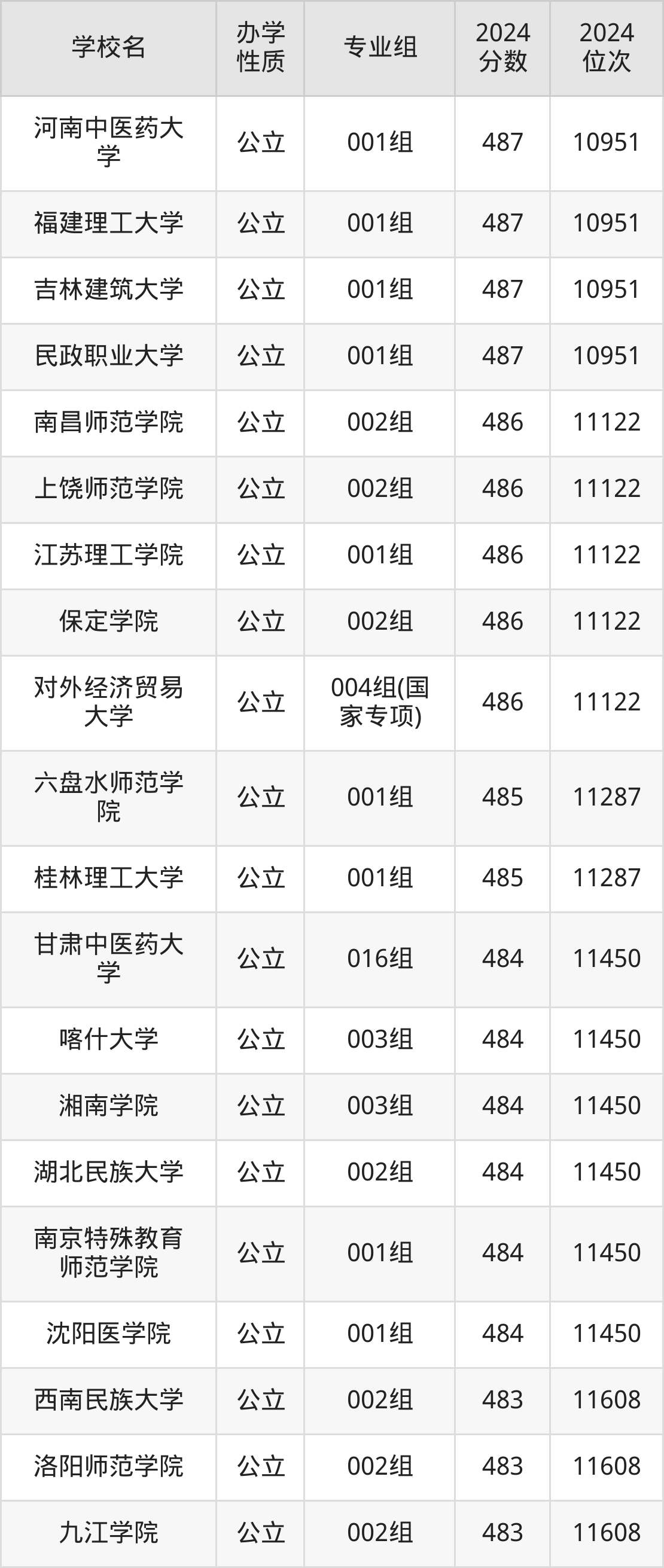 | 吉林财经大学 | 006组(民 语类及对等培 养)(少数民 族) | 484 | 39347 |