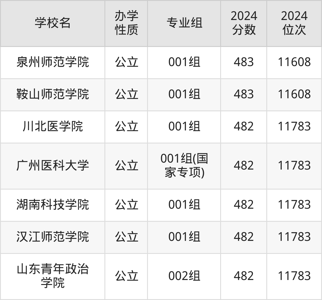 | 广州医科大学 | 001组(国 家专项) | 482 | 11783 |