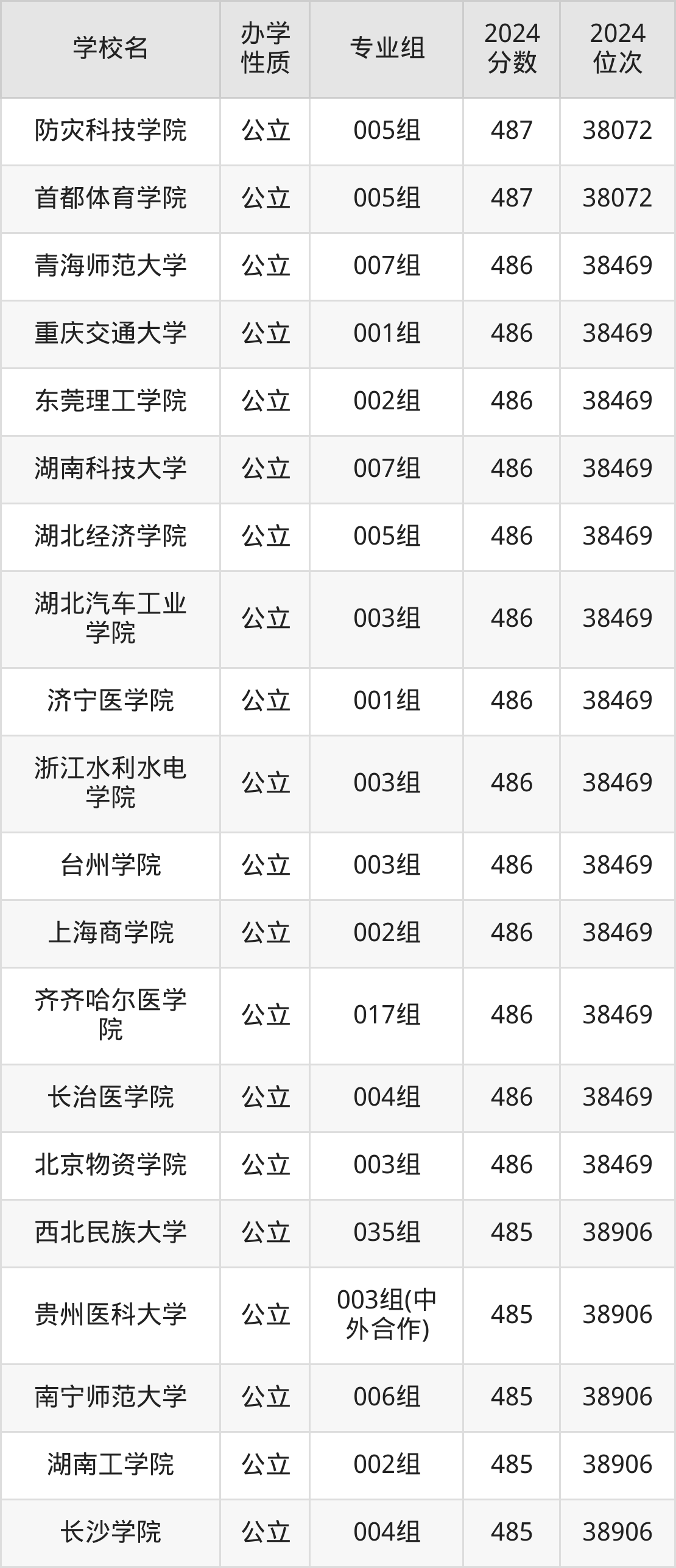 | 学校名 | 专业组 | 2024 分数 | 2024 位次 |