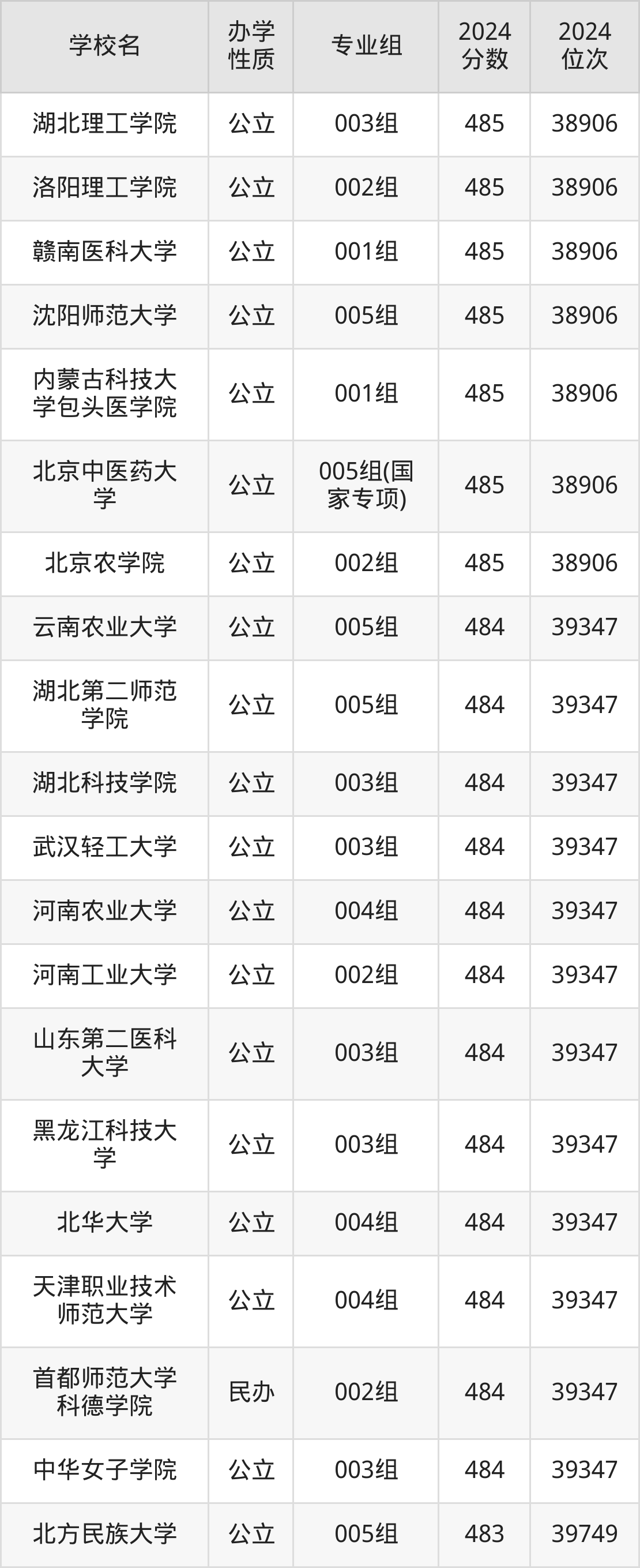 | 北京中医药大 学 | 005组(国 家专项) | 485 | 38906 |