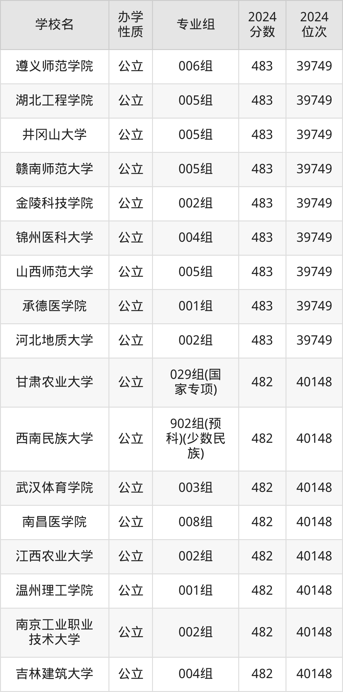 | 西南民族大学 | 902组(预 科)(少数民 族) | 482 | 40148 |