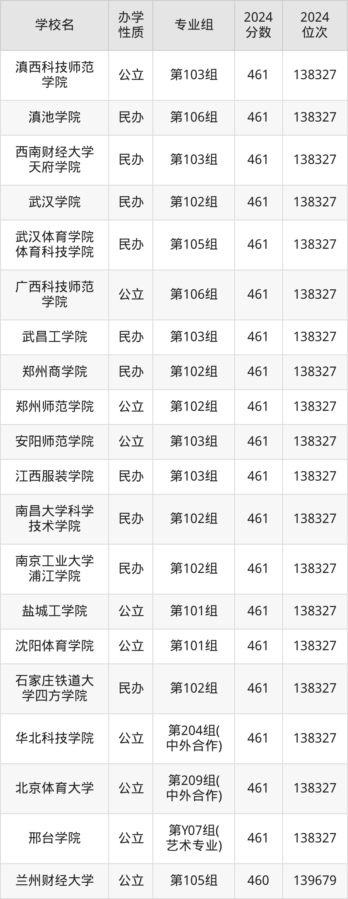 | 沈阳体育学院 | 第101组 | 461 | 138327 |