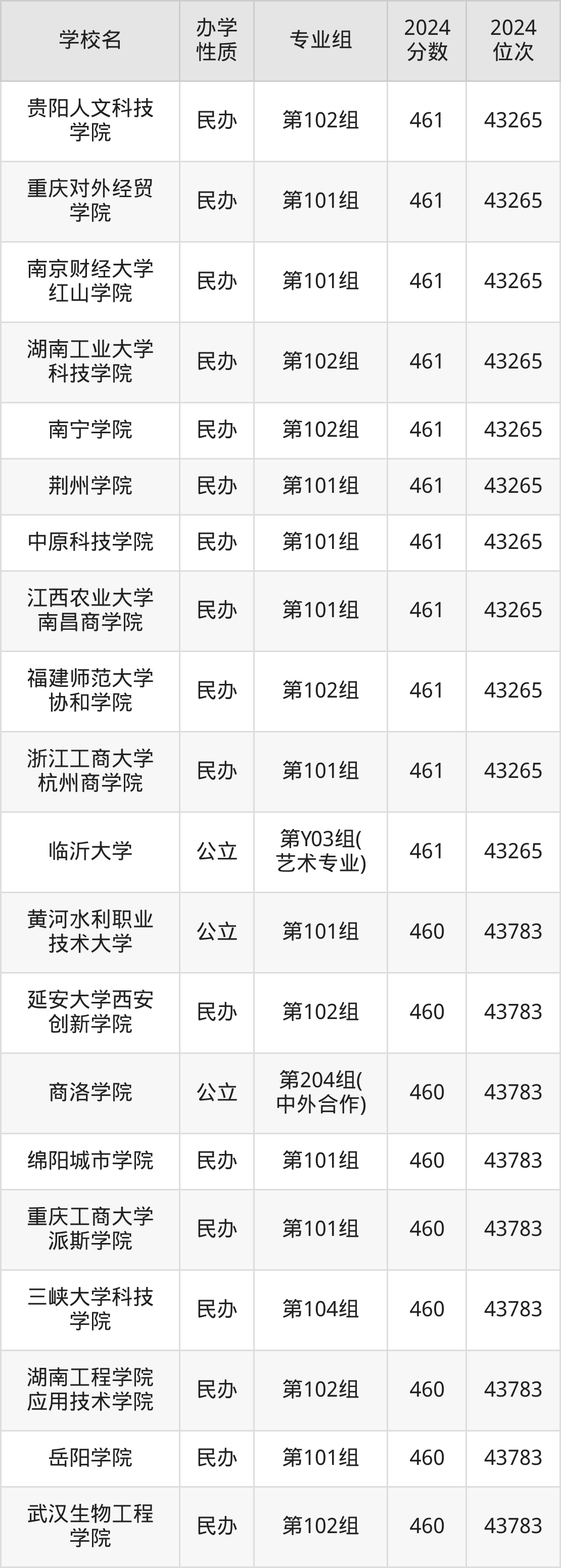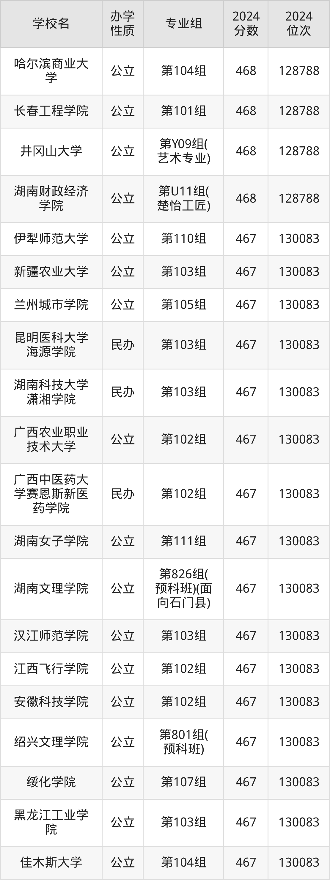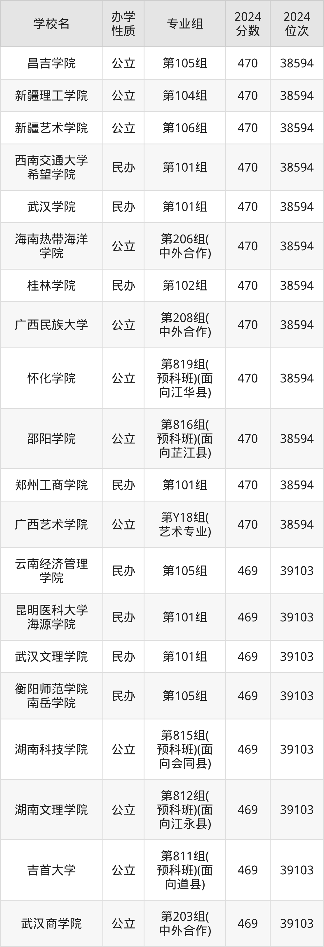 2024年湖南历史类465分考生能上昌吉学院、新疆理工学院、新疆艺术学院、西南交通大学希望学院、武汉学院等104所二本院校,具体录取分数线及位次为: