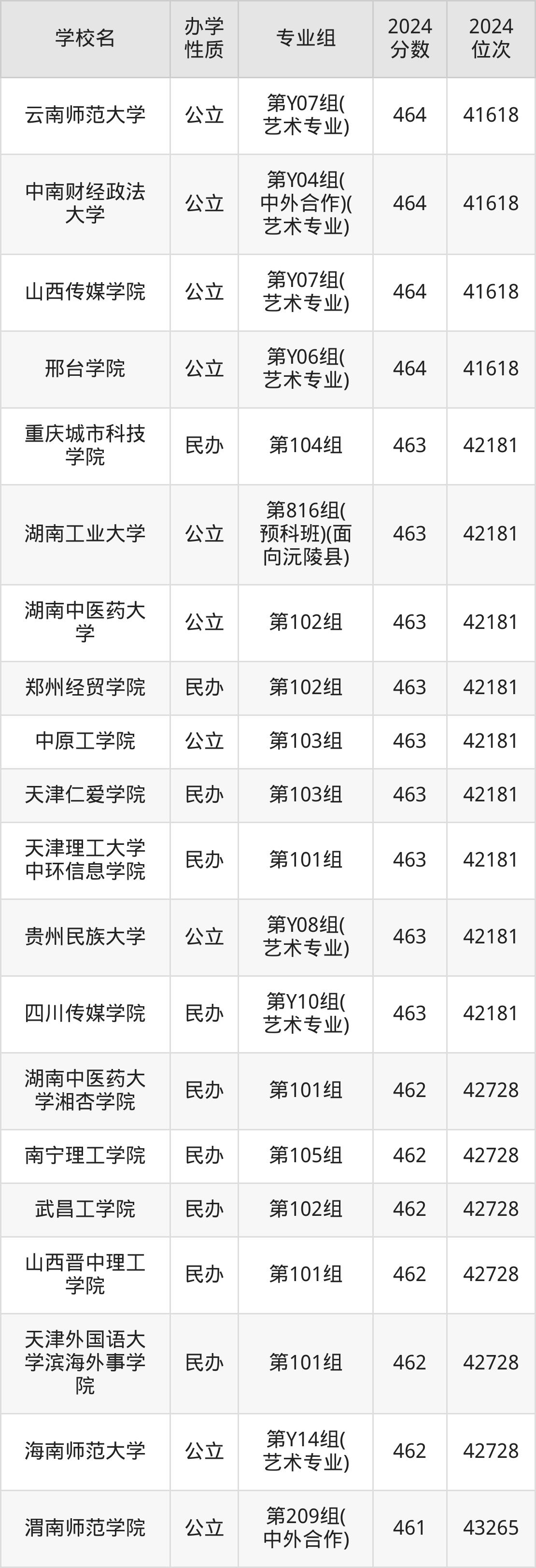 | 湘南学院 | 第809组( 预科班)(面 向全省) | 461 | 138327 |
