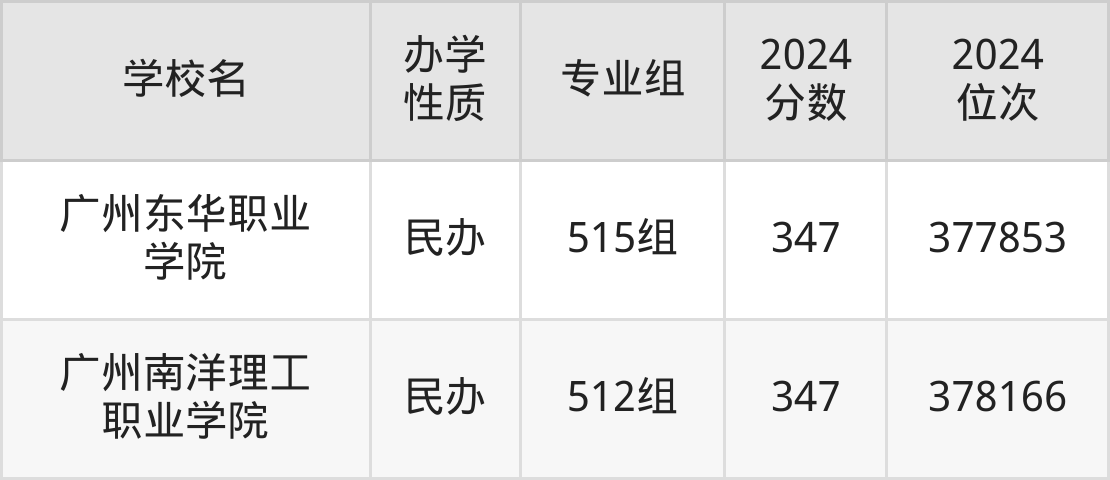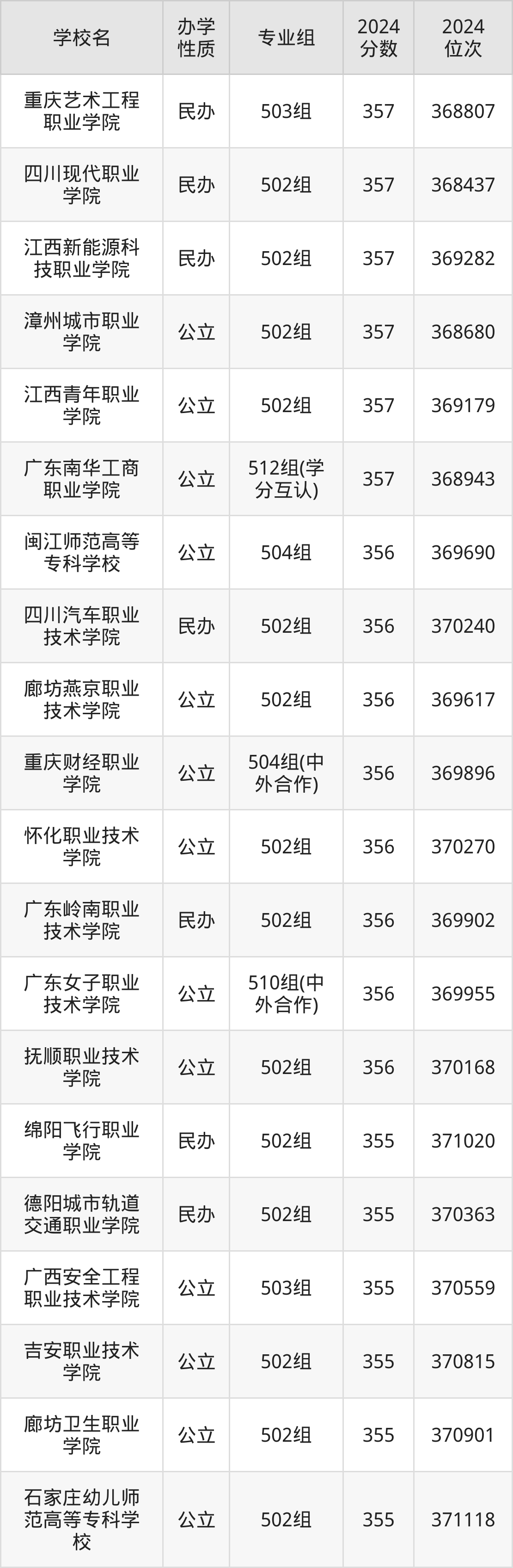 | 广东文艺职业 学院 | 513组 | 355 | 370855 |