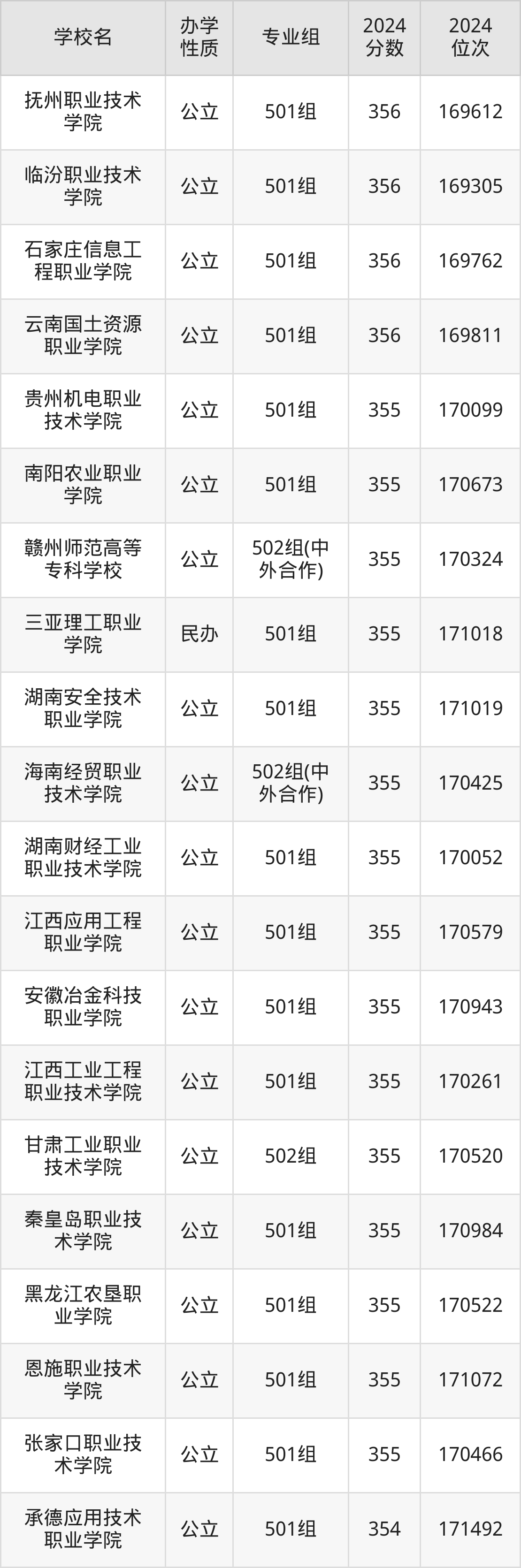 | 长春金融高等 专科学校 | 502组 | 354 | 372101 |