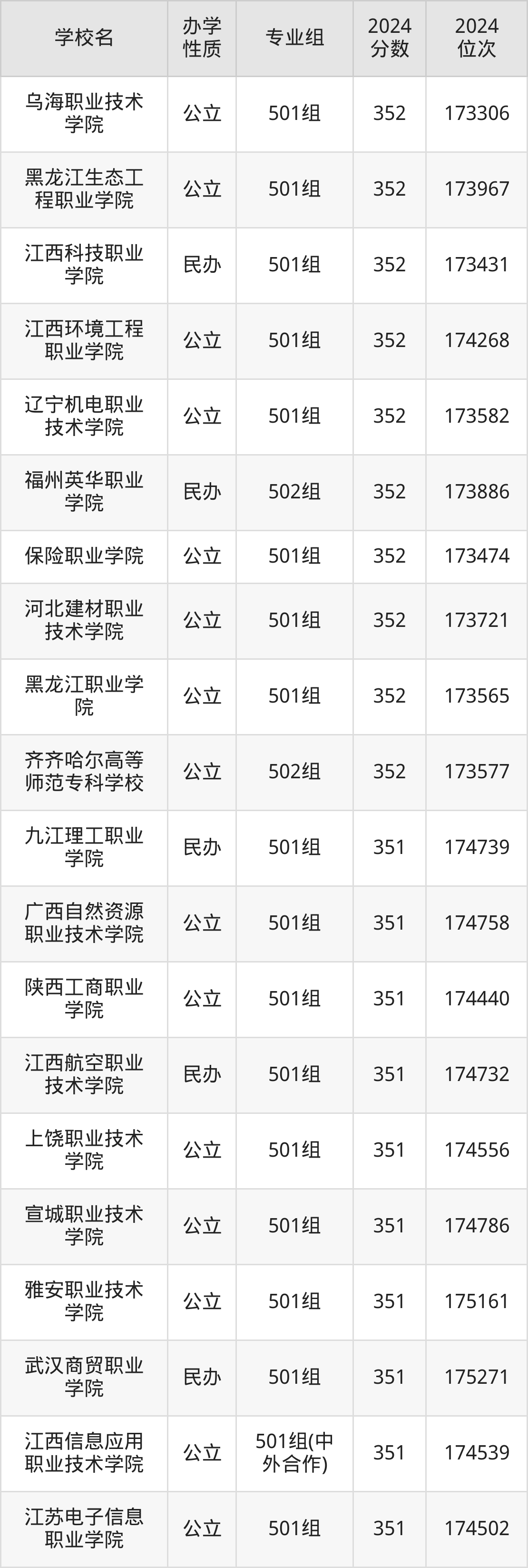 | 江西环境工程 职业学院 | 502组 | 348 | 377272 |