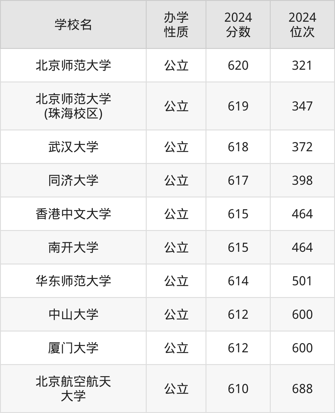| 北京师范大学 (珠海校区) | 619 | 347 |