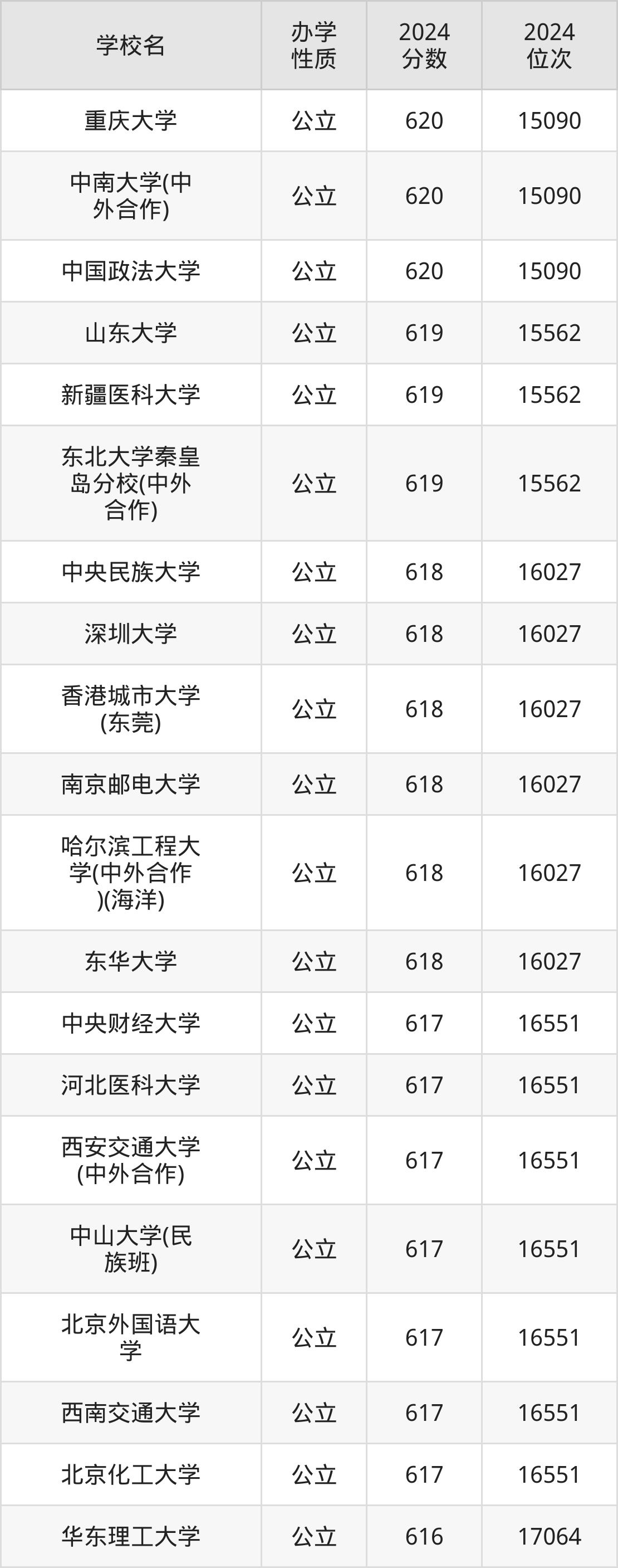 | 重庆大学 | 620 | 15090 |