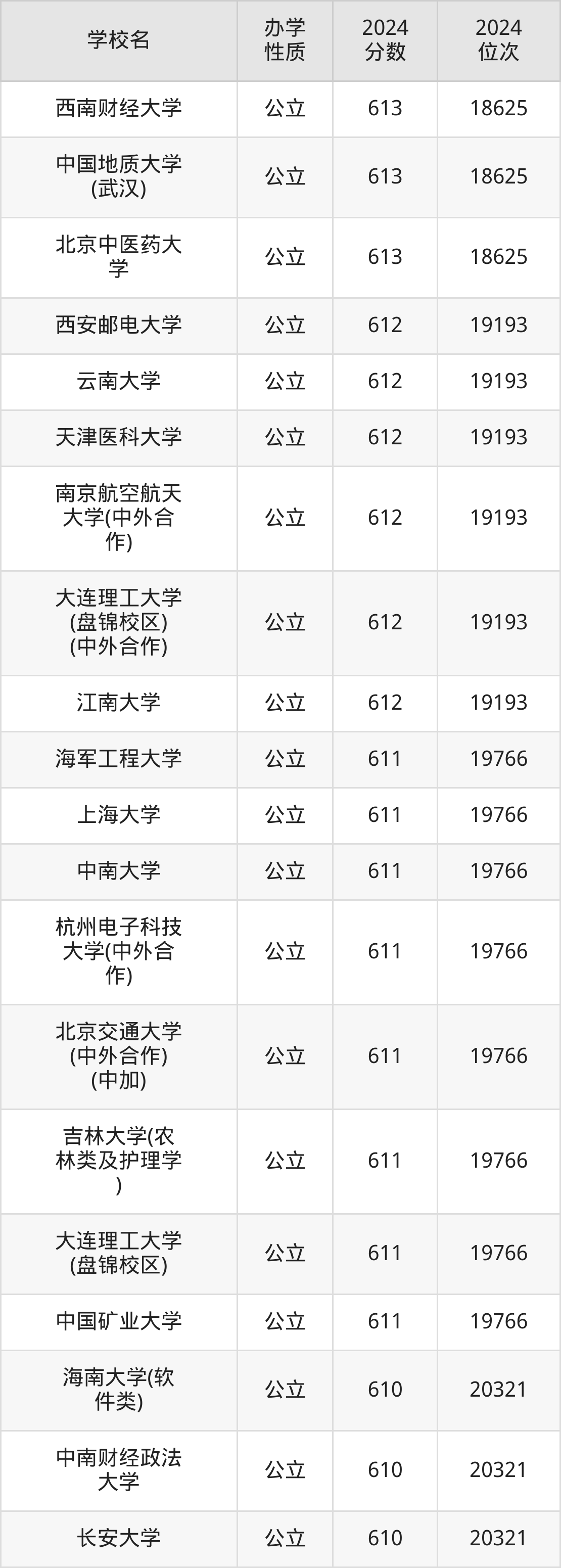 | 中南大学 | 611 | 19766 |