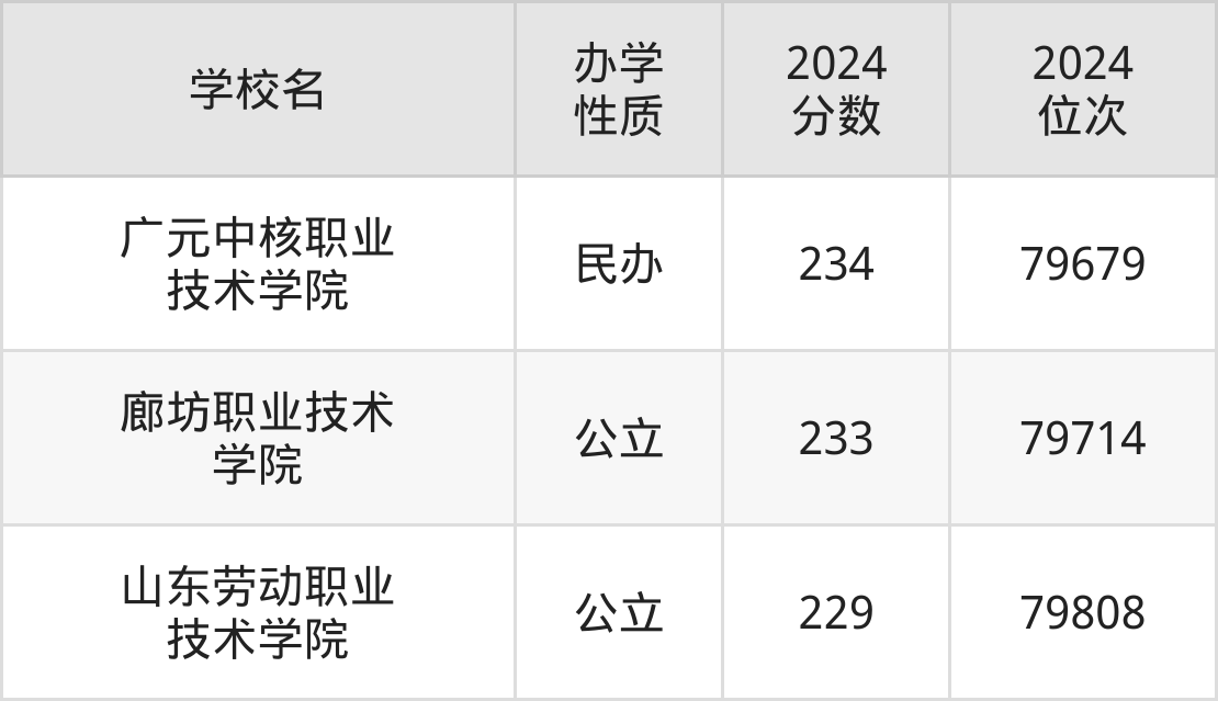 | 山东劳动职业 技术学院 | 229 | 79808 |