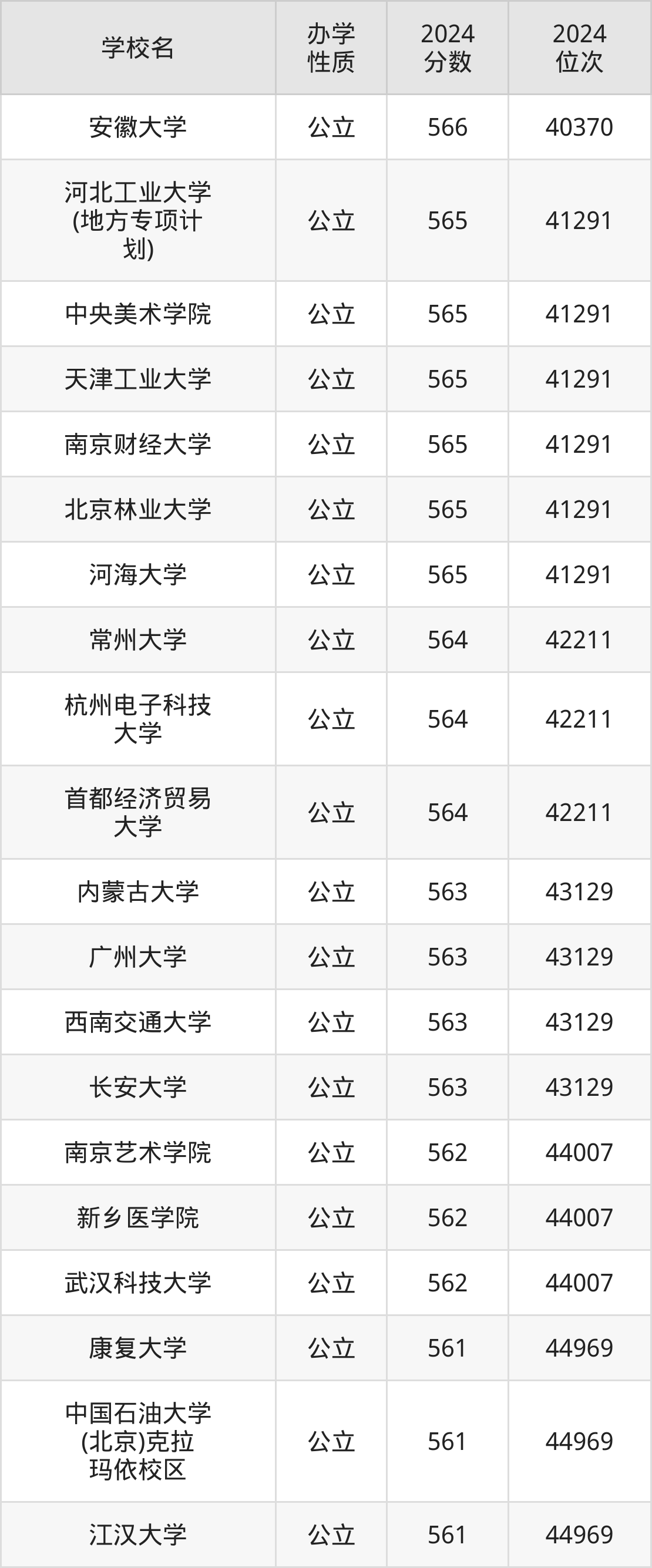 | 中国石油大学 (北京)克拉 玛依校区 | 561 | 44969 |