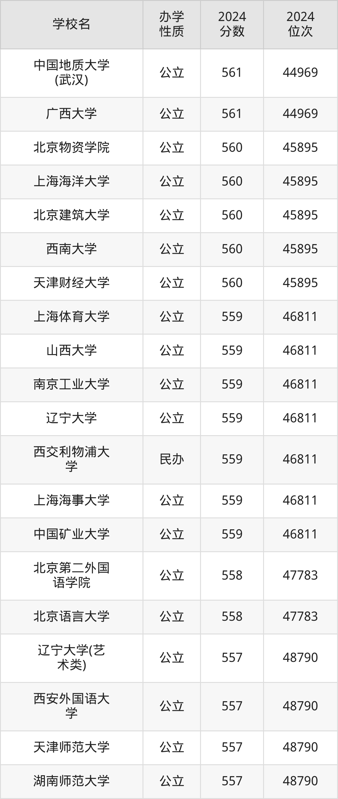 | 广西大学 | 561 | 44969 |