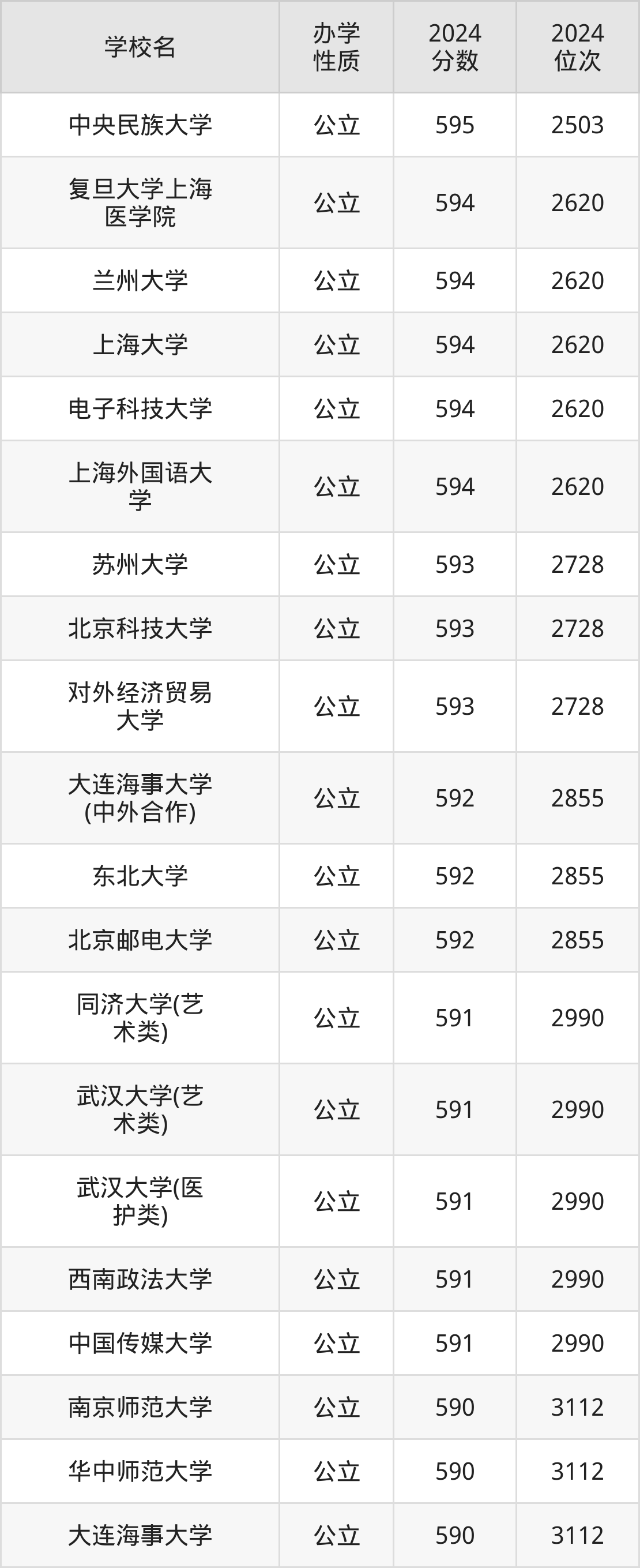 | 中央民族大学 | 595 | 2503 |