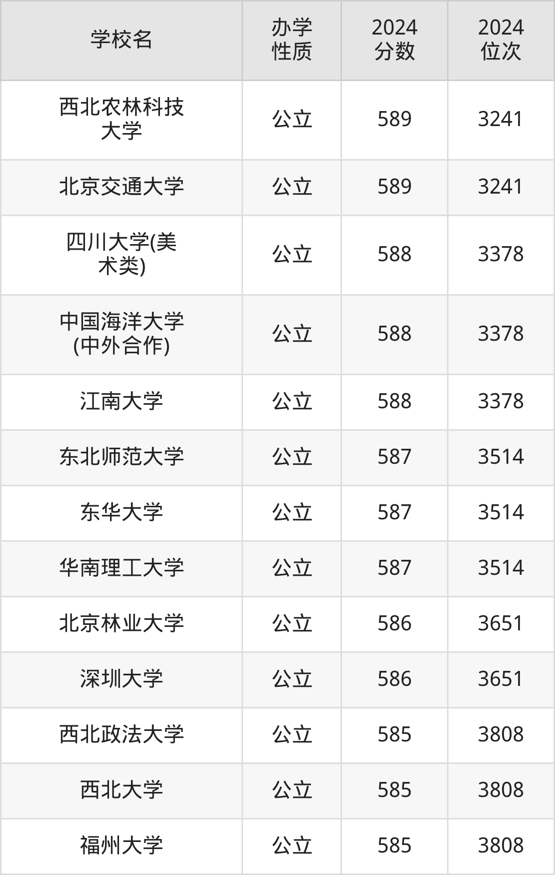 | 西北农林科技 大学 | 589 | 3241 |