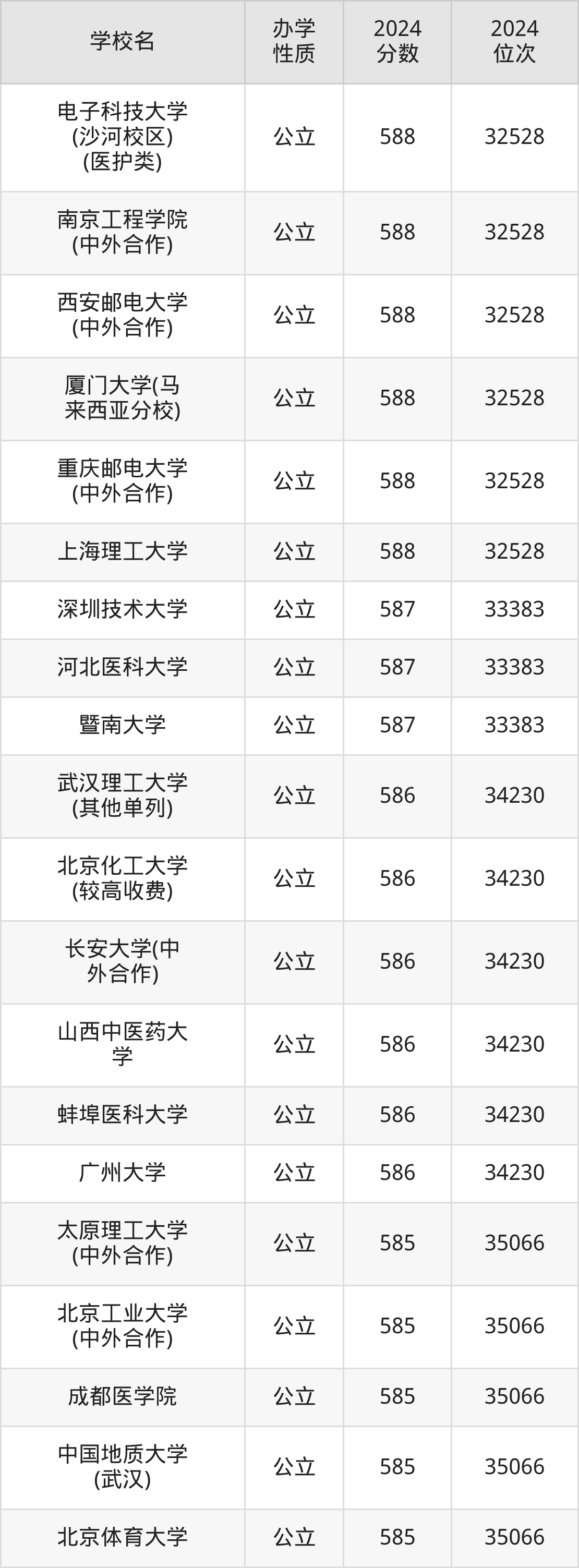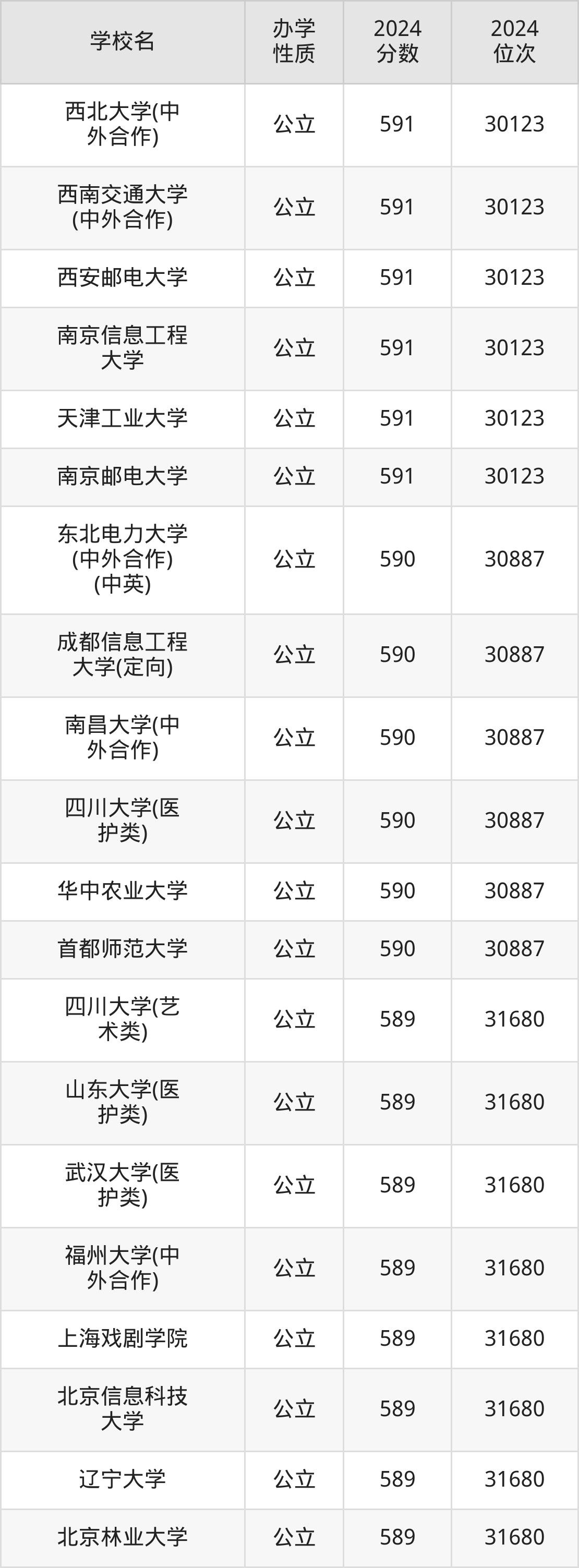 | 学校名 | 2024 分数 | 2024 位次 |