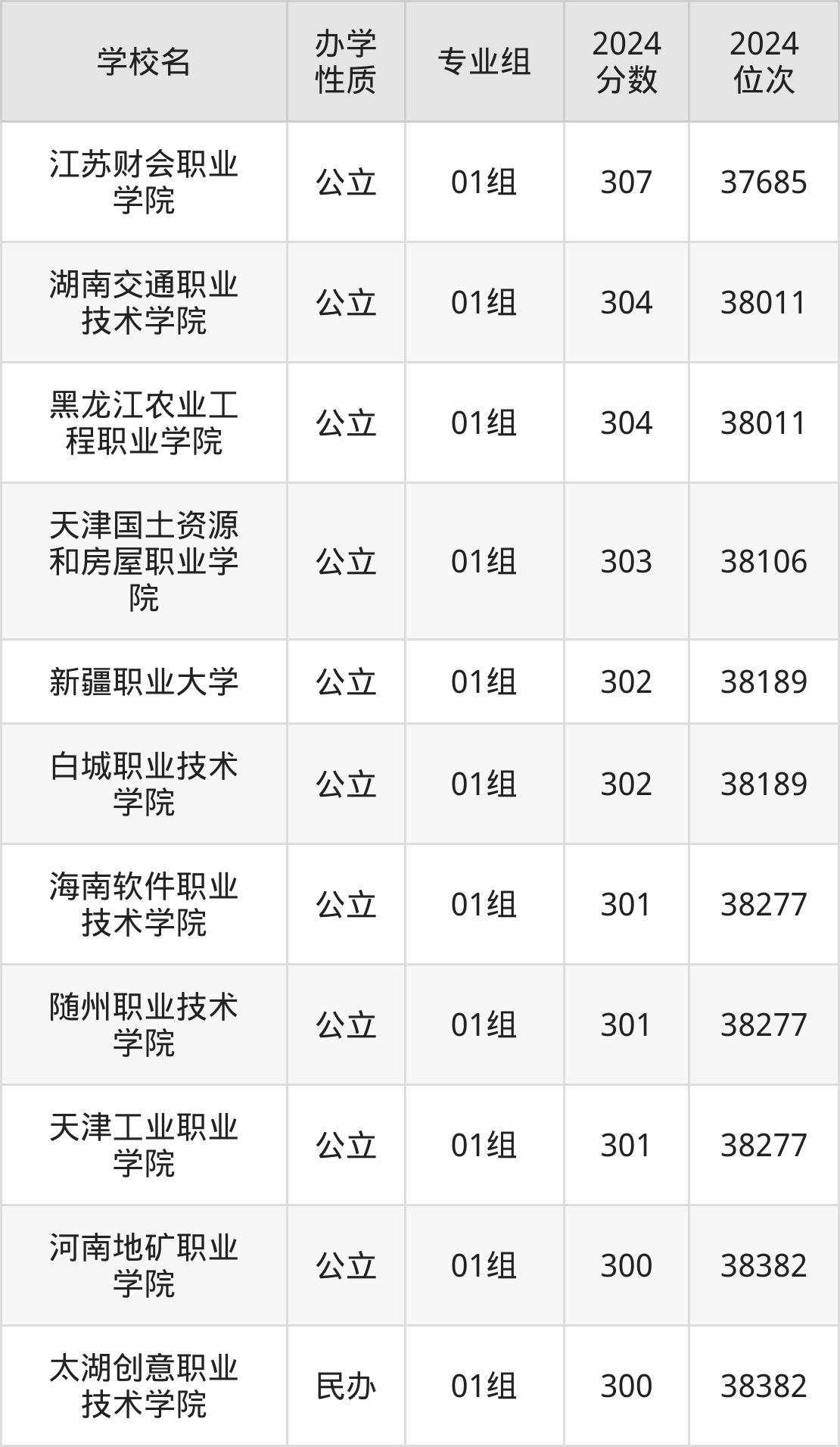 | 随州职业技术 学院 | 01组 | 301 | 38277 |