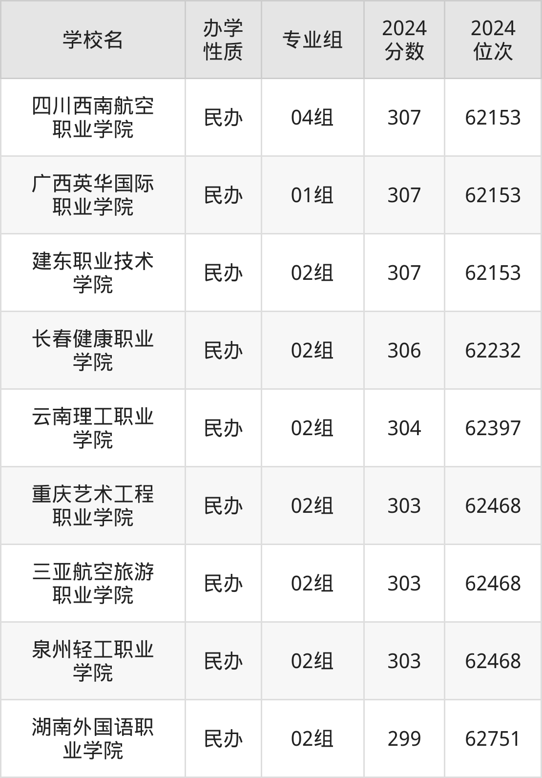 2024年江苏物理类303分考生能上四川西南航空职业学院、广西英华国际职业学院、建东职业技术学院、长春健康职业学院、云南理工职业学院等9所专科院校,具体录取分数线及位次为: